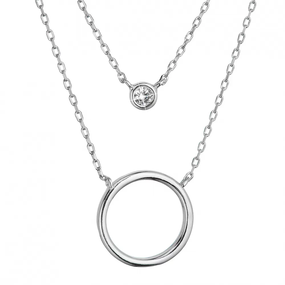 Strieborný náhrdelník dvojitá retiazka krúžok a zirkón 12111.1
