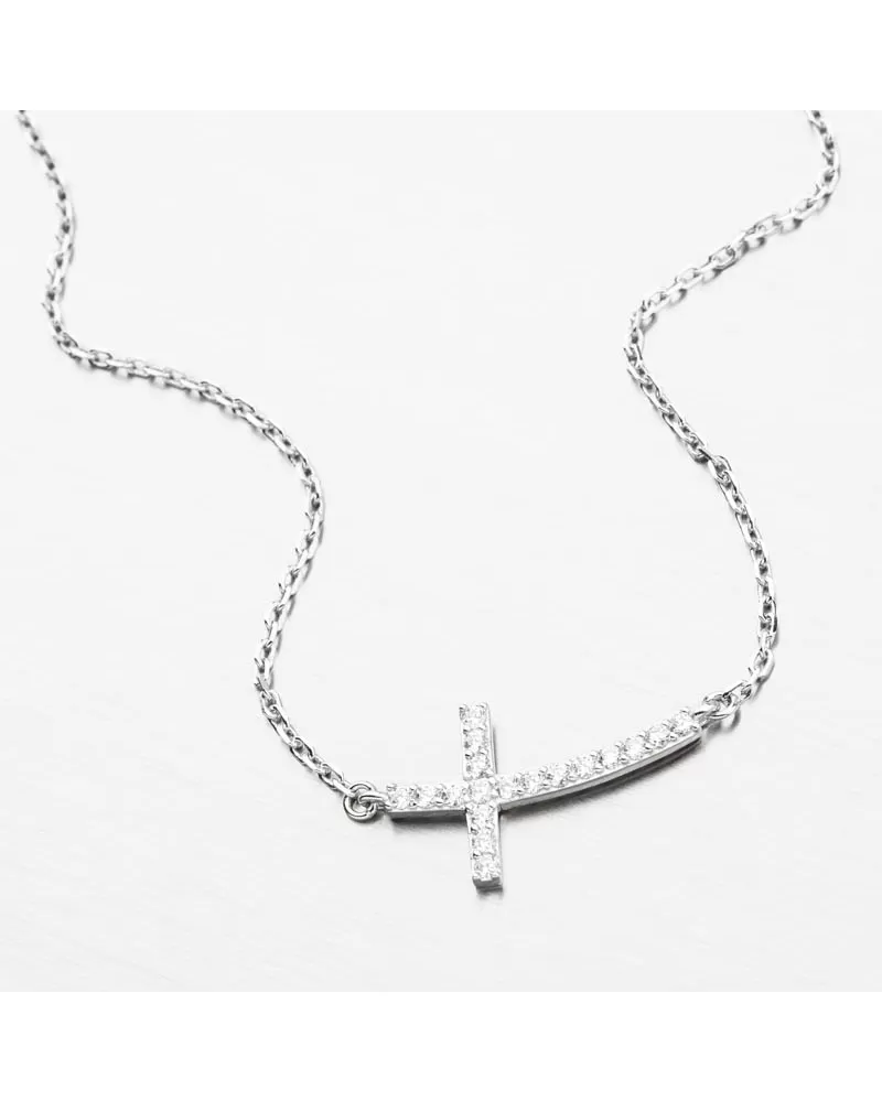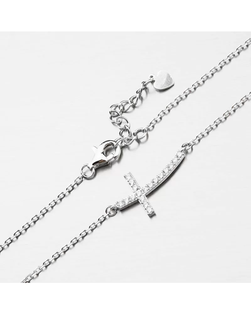 Strieborný náhrdelník s krížom a so zirkónmi PKL-5010