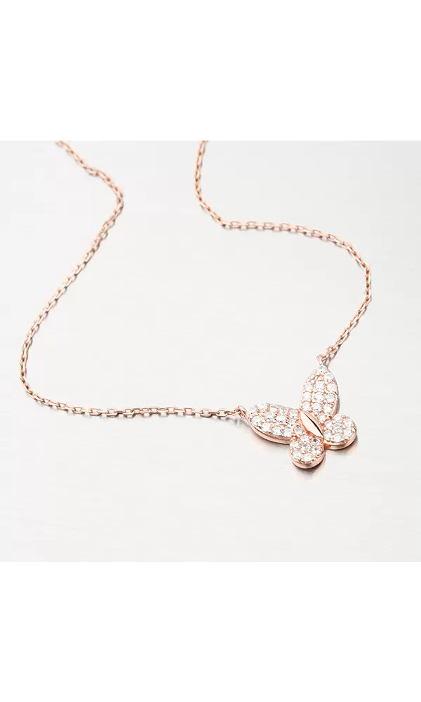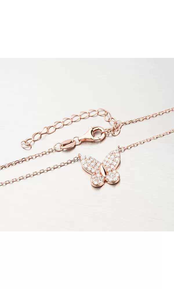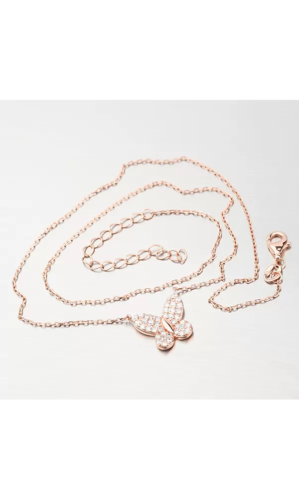 Strieborný náhrdelník s motýľom vo farbe ružového zlata N1802326-2493-SLX