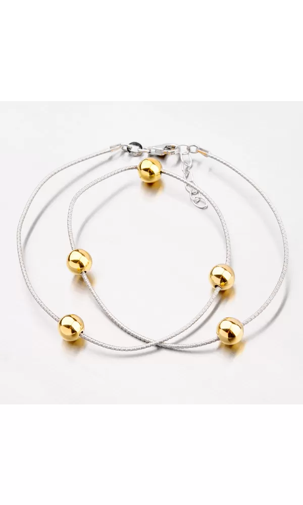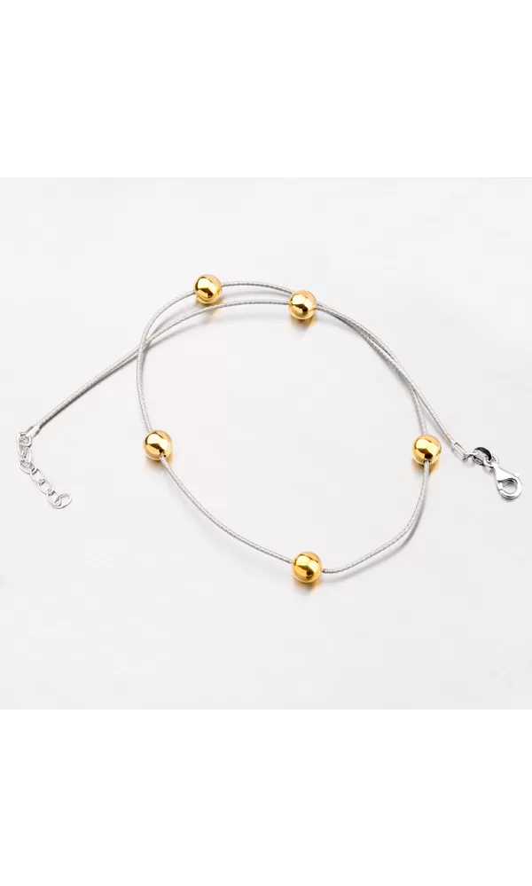 Decentný náhrdelník zo striebra o rýdzosti 925/1000 zdobený pozlátenými guličkami zaujme vaše okolie nech už navštívite akúkoľvek akciu. Všetky guličky sú pozlátené žltým zlatom a krásne prežiaria váš krk. Náhrdelník je možné zapnúť na veľkosť 42 cm a vďaka pridanej retiazke až na veľkosť 45 cm. Náhrdelník sa zapína na bezpečnú karabínu. Celý povrch náhrdelníka je zušľachtený rhodiovaním. Ródium je ušľachtilý drahý kov zo skupiny platinových kovov. Rhodiovaním strieborných šperkov galvanickým nanášaním tohto drahého platinového kovu sa stáva povrch šperku tvrdší, stálejší a odolnejší voči vonkajším vplyvom ako je mechanický oter, poškriabanie, nabiehanie striebra, ľudský pot, kozmetické prípravky a ďalšie. Ródium je antialergické.