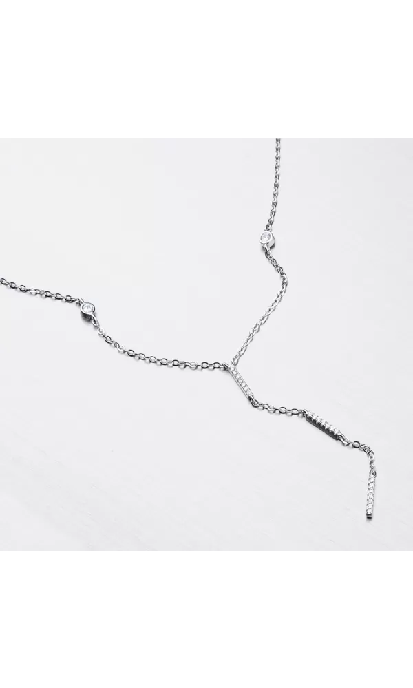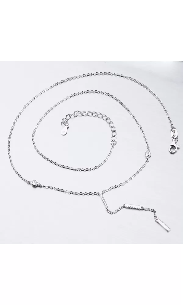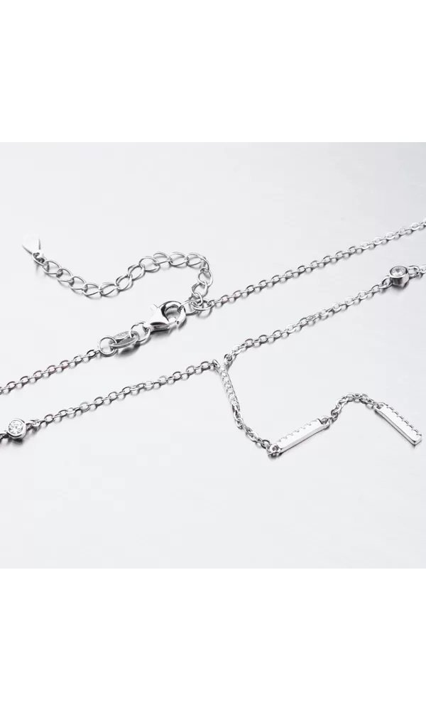 Ak chcete upútať svojim dekoltom, tak týmto rafinovaným náhrdelníkom určite zaujmete. Náhrdelník je zdobený zirkónmi v briliantovom bruse, ktoré sú usadené priamo na retiazke. Ďalej je z náhrdelníka spustená retiazka s tyčkami, ktoré sú zdobené zirkónmi. Náhrdelník sa zapína na karabínku. Dĺžka náhrdelníka je 42 cm s použitím prídavnej retiazky je možné náhrdelník zapnúť kdekoľvek v rozmedzí 42 cm až 48 cm.