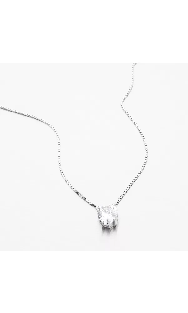 Ozdobte svoj dekolt náhrdelníkom, ktorý zdobí veľký zirkón brúsený do tvaru srdca. Zirkón je uchytený štyrmi krapnami a každá z jeho facet hádže dokonalé odlesky a ligot, ktorý nikomu neunikne. Strieborný náhrdelník sa na perový krúžok.