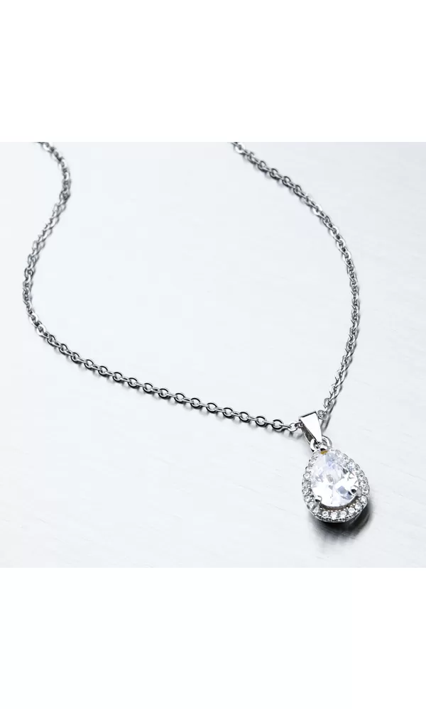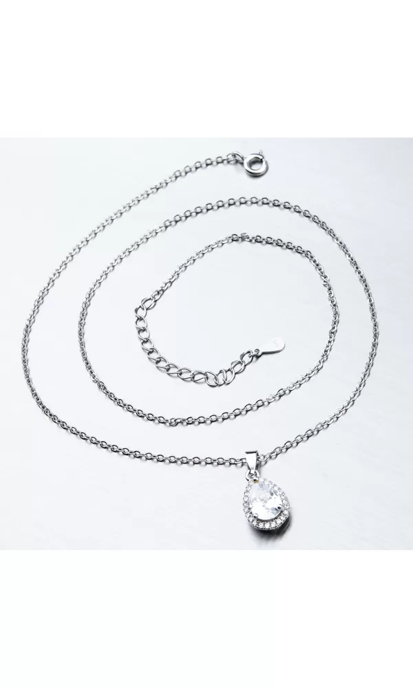 Elegantný náhrdelník je tvorený z retiazky anker a prívesku v tvare kvapky. Prívesok je zdobený veľkým zirkónom precízne vybrúsený do tvaru kvapky, ktorý dopĺňajú zirkóny v briliantovom bruse vsadené okolo. Prívesok je možné z retiazky zložiť. Náhrdelník sa zapína na perový krúžok. Dĺžka náhrdelníka je 40 cm s použitím prídavnej retiazky je možné náhrdelník zapnúť kdekoľvek v rozmedzí 40 cm až 45 cm.
