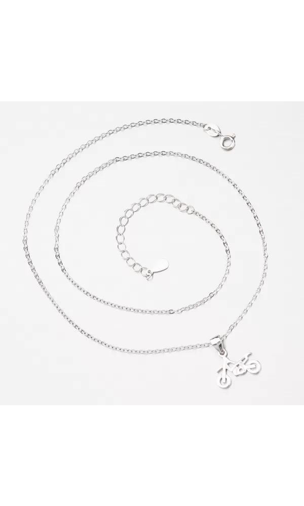 Strieborný náhrdelník je zložený z retiazky anker a prívesku. Prívesok je v tavri motorky ktorá poteší mužov, ženy aj deti. Motorka je leštená do vysokého lesku bez kameňov. Náhrdelník sa zapína na perový krúžok. Dĺžka náhrdelníka je 42 cm s použitím prídavnej retiazky je možné náhrdelník zapnúť kdekoľvek v rozmedzí 42 cm až 48 cm.