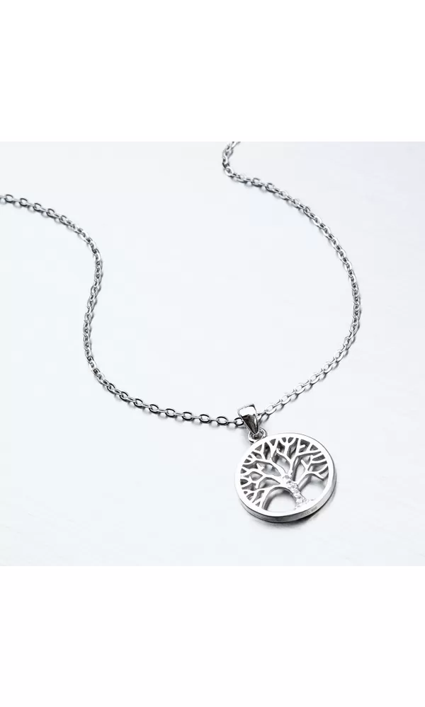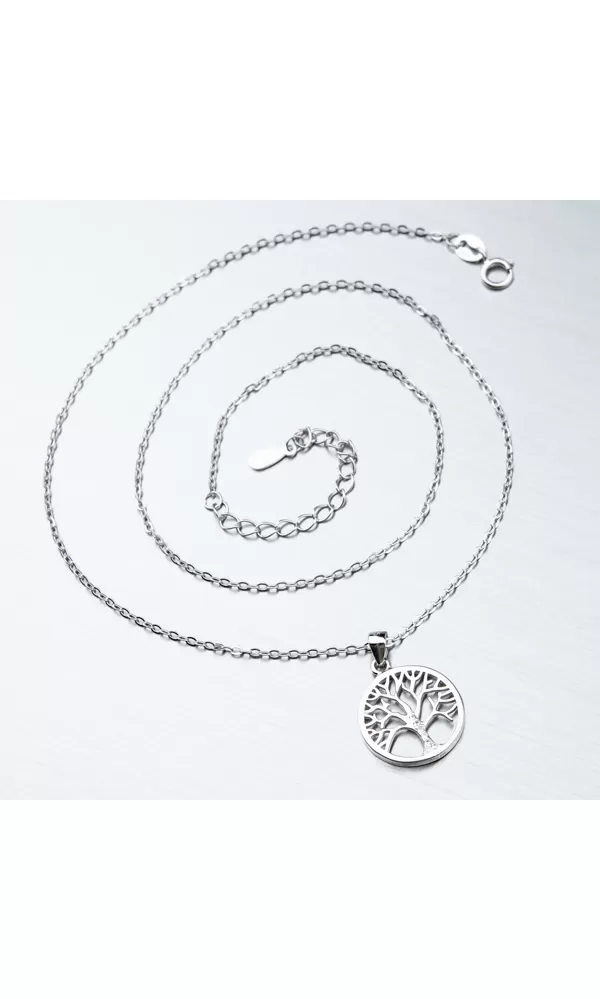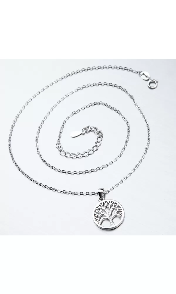 Náhrdelník s príveskom v tvare kruhu, ktorý zviera strom života poteší ženy aj dievčatá bez ohľadu na vek. Strom života je detailne spracovaný a kmeň má zdobený zirkónmi v briliantovom bruse. Prívesok je možné z retiazky zložiť. Náhrdelník sa zapína na perový krúžok. Dĺžka náhrdelníka je 40 cm s použitím prídavnej retiazky je možné náhrdelník zapnúť kdekoľvek v rozmedzí 40 cm až 45 cm.