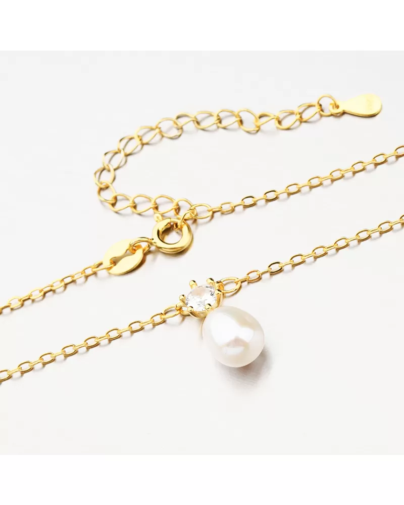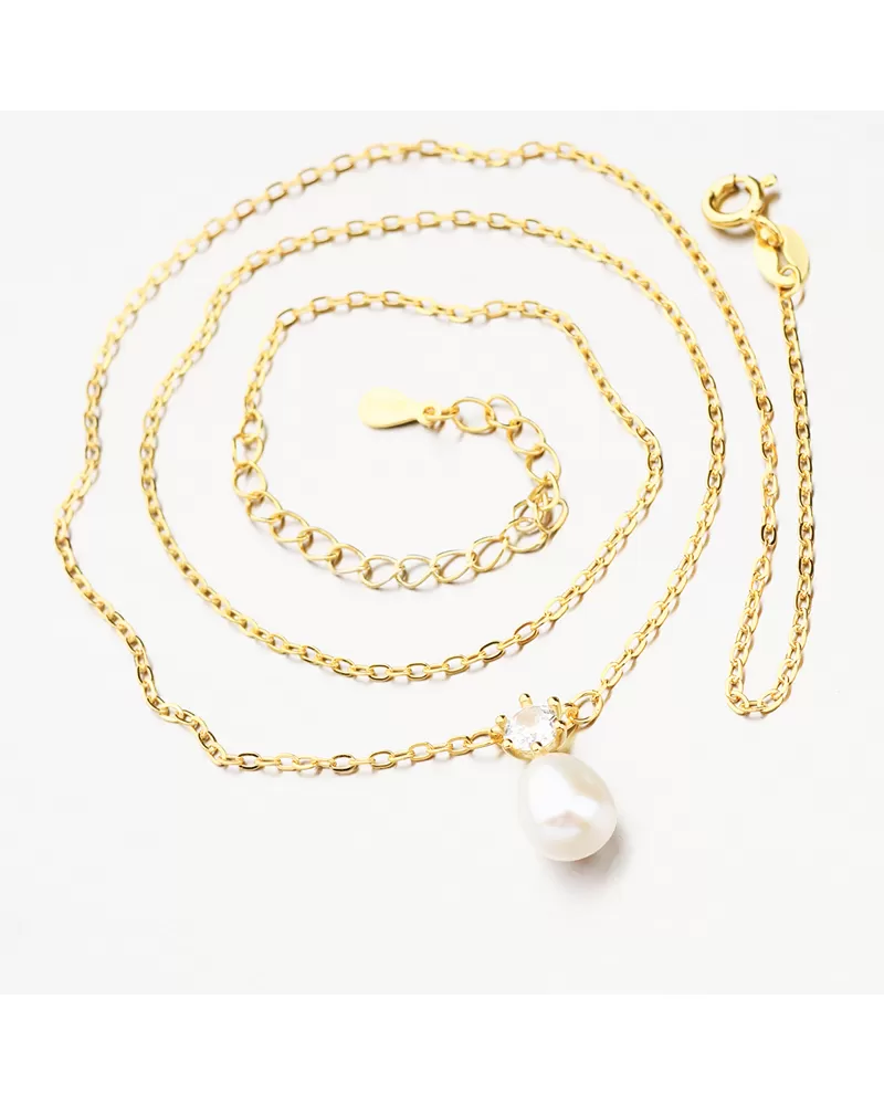 Náhrdelník zdobí umelá perla v bielej farbe a jeden výrazný zirkón. Zirkón je precízne vsadený a je vybrúsený do briliantového brusu. Dĺžka náhrdelníka je 42 cm, s využitím prídavnej retiazky s dĺžkou 5 cm, je možné náhrdelník zapnúť až na dĺžku 47 cm.