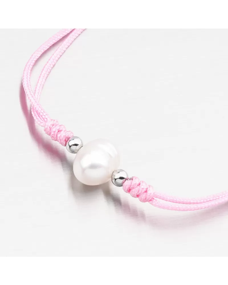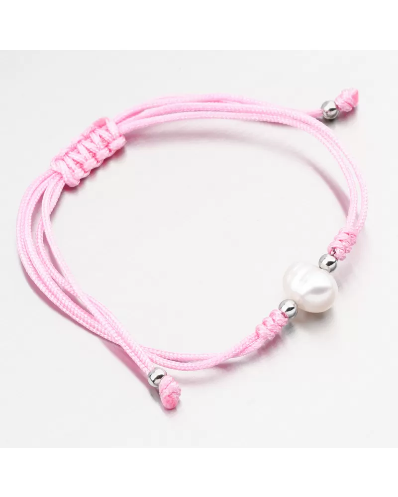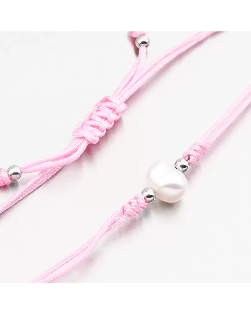 Módny dámsky náramok pozostáva z textilnej šnúry v ružovej farbe, ktorá je zdobená umelou perlom v bielych príslušenstve v striebre. Posuvná dĺžka náramku vám umožňuje pohodlne sa zmestiť bez prevíjania. Minimálna dĺžka náramku je 16 cm, maximálny náramok 24 cm