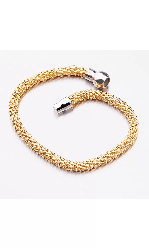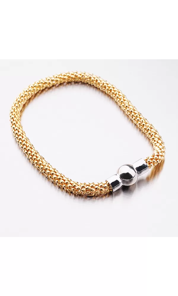 Krásny náramok pre ženy zo striebra zdobí rafinované zapínanie v tvare guličky. Zapínanie je na magnet. Žltú farbu zlata mu dodáva zlatenie PVD… Celý popis