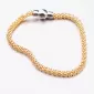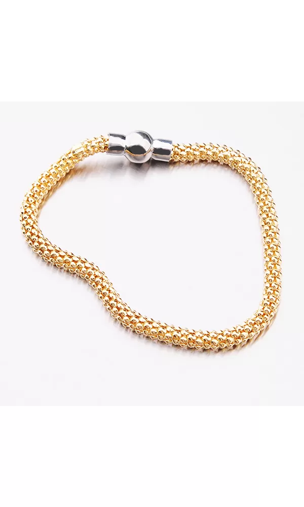 Krásny náramok pre ženy zo striebra zdobí rafinované zapínanie v tvare guličky. Zapínanie je na magnet. Žltú farbu zlata mu dodáva zlatenie PVD Technikou. Prednosťou zlatenia technológií PVD je vysoká tvrdosť a odolnosť proti oteru! Ide o hrubú vrstvu, ktorá preniká do pôvodného materiálu. Zlatenie technológií PVD sa dá porovnať s približne 12 mikrónmi galvanického zlatenia, čo je vysoká hodnota, ktorá pri bežnom nosení vydrží až 12 rokov.
