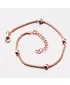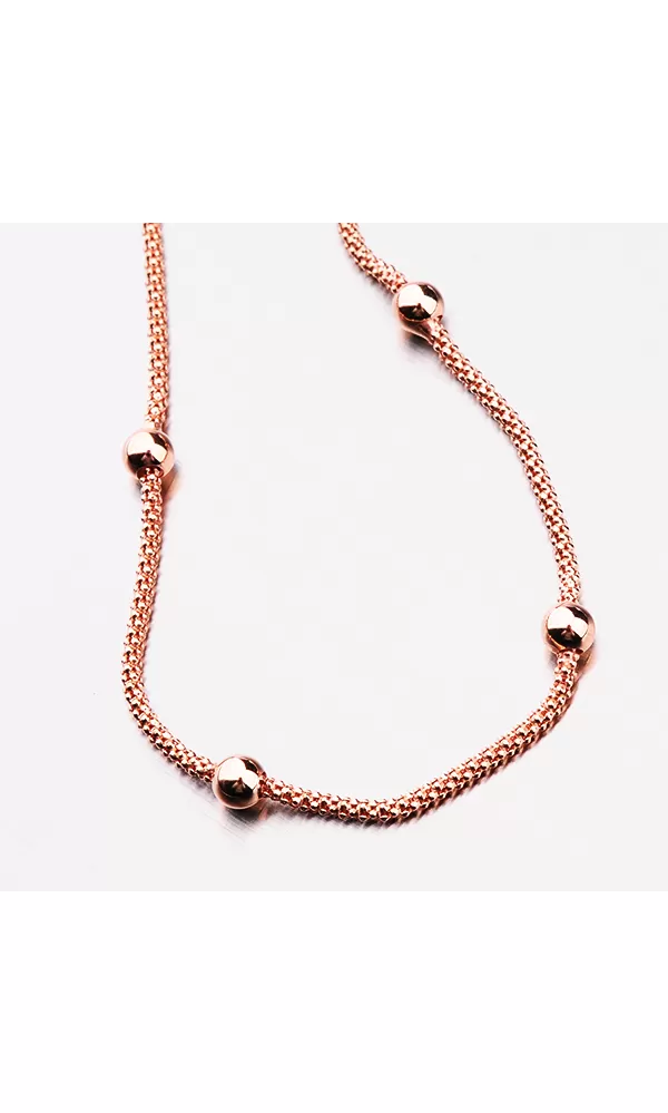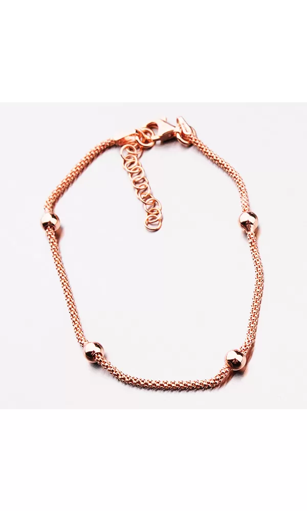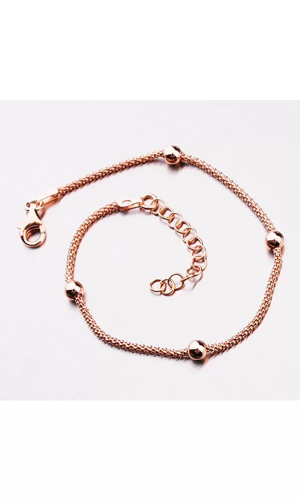 Zlatený náramok je tvorený retiazkou, ktorú zdobia leštené guličky. Náramok je pozlátený technikou PVD vo farbe ružového zlata. Prednosťou zlatenia technológií PVD je vysoká tvrdosť a odolnosť proti oteru! Ide o hrubú vrstvu, ktorá preniká do pôvodného materiálu. Zlatenie technológií PVD sa dá porovnať s približne 12 mikrónmi galvanického zlatenia, čo je vysoká hodnota, ktorá pri bežnom nosení vydrží až 12 rokov. Dĺžka náramku je 17 cm s využitím prídavnej retiazky s dĺžkou 3 cm je možné náramok zapnúť až na dĺžku 20 cm.