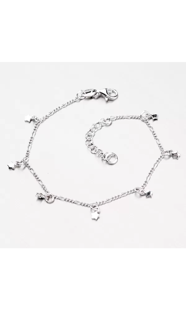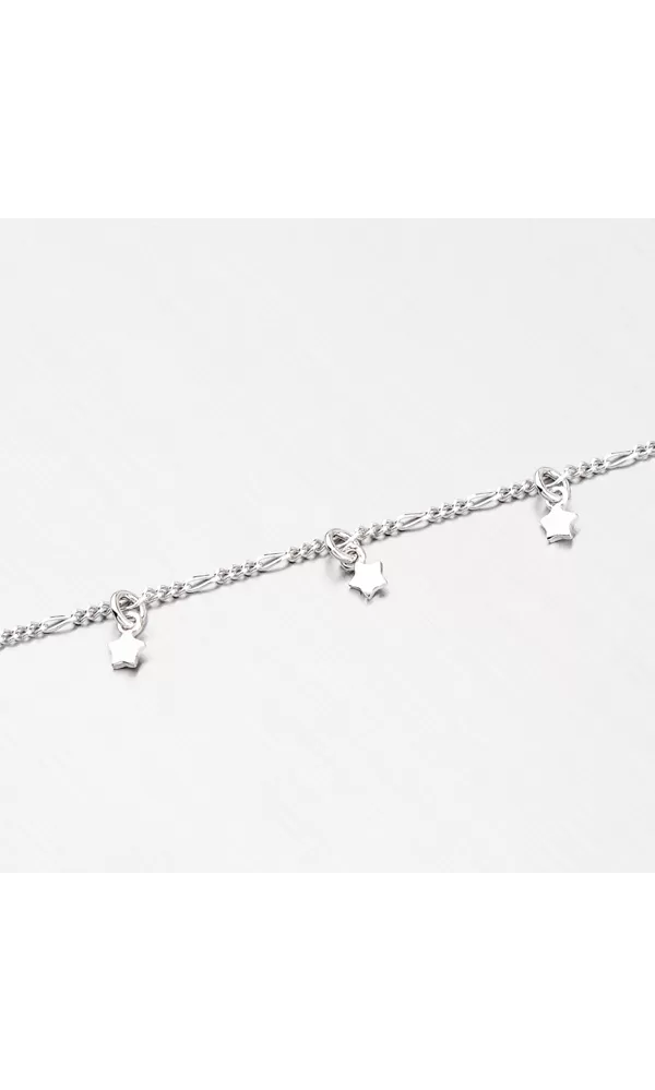 Páčia sa Vám jemné šperky? Tento strieborný náramok vás nadchne. Je tvorený z retiazky Figaro 3+1, na ktorej sú umiestnené v pravidelnom intervale prívesky v tvare hviezd. Hviezdy sú hladké v lesklej povrchovej úprave.