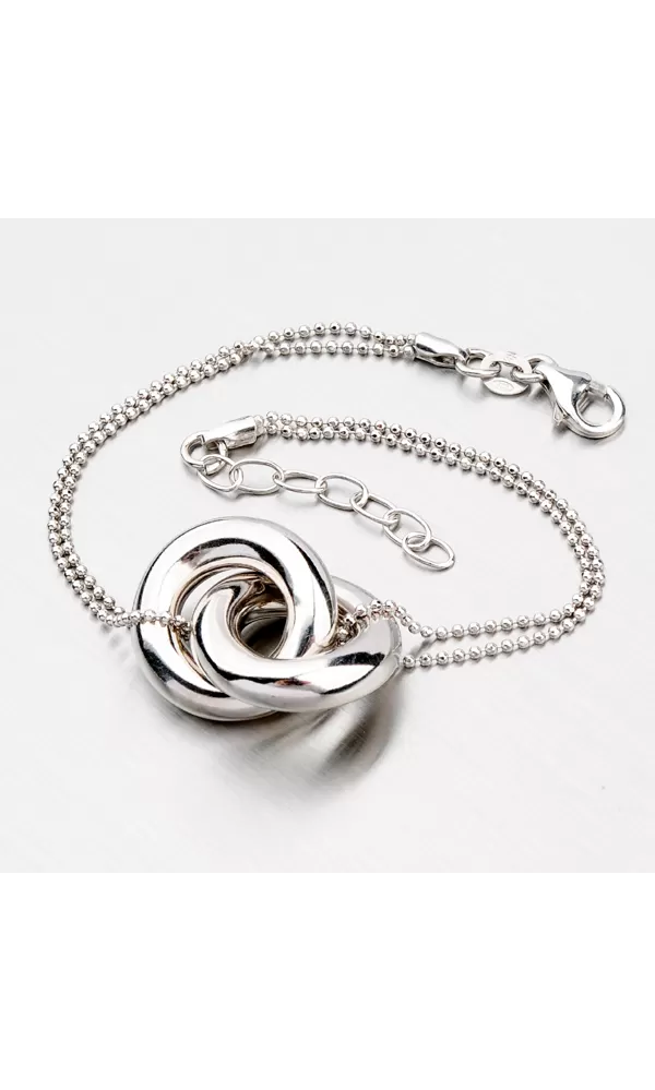 Moderný dámsky náramok tvorený z dvoch radov guličkovej retiazky av centre náramku sú dve duté zapletené kolieska. Náramok je so zapínaním na karabínku a navyše má predlžovaciu časť, ktorú je možné zapnúť od 18cm až na dĺžku 22 cm. Tento náramok sa bude hodiť prevažne pre špeciálne udalosti.