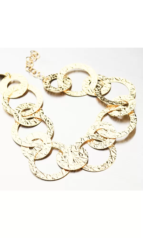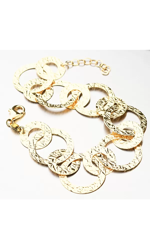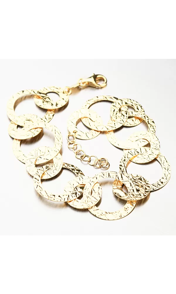 Ozdobte svoje zápästie a podčiarknite svoju ženskosť týmto nádherným náramkom. Náramok je tvorený kruhmi, ktoré sú zvýraznené ornamentmi. Dĺžka náramku je 17 cm s využitím prídavnej retiazky s dĺžkou 3 cm, je možné náramok zapnúť až na dĺžku 20 cm.