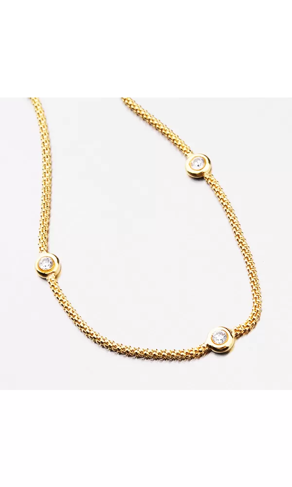Zlatený náramok je tvorený retiazkou, ktorú zdobia zirkóny vsadené do strieborných krúžkov. Náramok je pozlátený technikou PVD vo farbe žltého zlata.… Celý popis