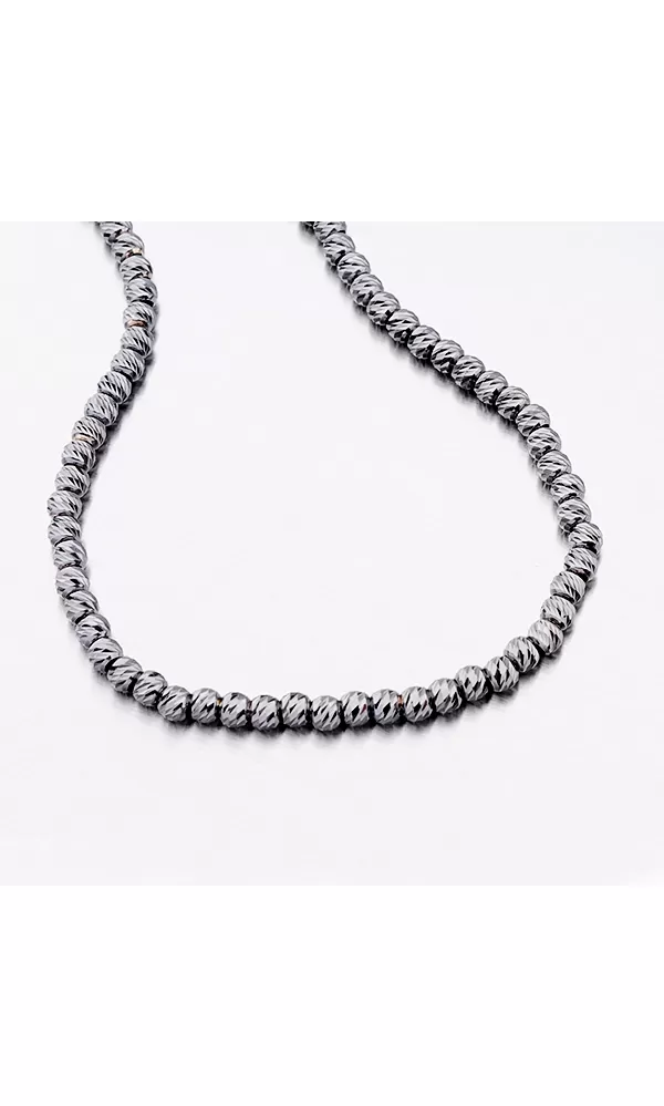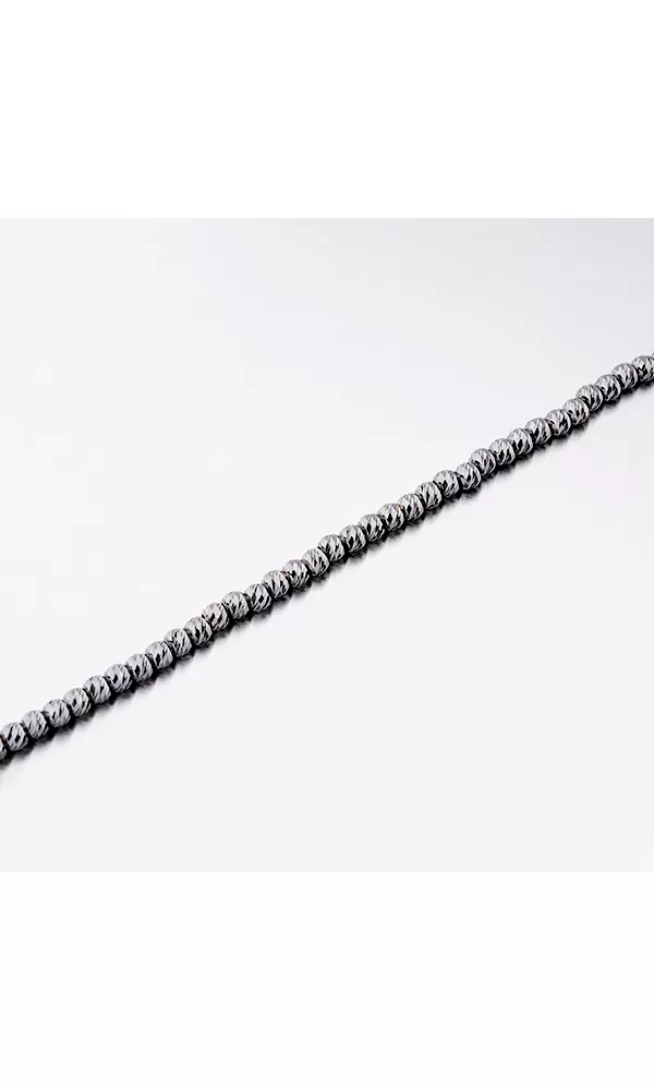 Trblietavý náramok je tvorený z guličiek, ktoré sú zvýraznené gravrovaním.  Povrch guličiek je upravený lesklými facetami. Facety sú lesklé pliešky robené za pomoci diamantového nástroja, ktorých povrch odráža svetlo, dodávajú tak šperku maximálny lesk a brilanciu zo všetkých uhlov. Dĺžka náramku je 17 cm s využitím prídavnej retiazky s dĺžkou 3 cm je možné náramok zapnúť až na dĺžku 20 cm.