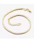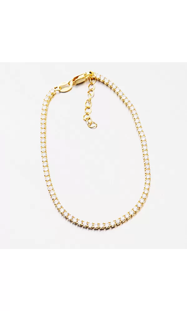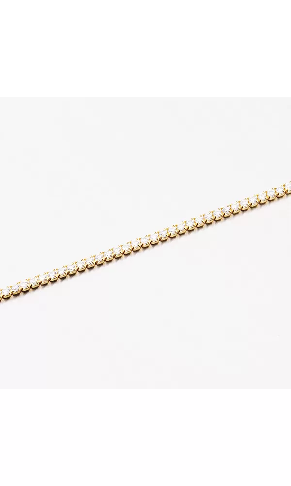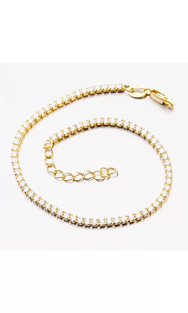 Luxusný náramok oplýva veľkým leskom. Náramok je precízne vysadený zirkónmi v briliantovom bruse. Náramok je pozlátený technikou PVD v žltej farbe zlata. Prednosťou zlatenia technológií PVD je vysoká tvrdosť a odolnosť proti oteru! Ide o hrubú vrstvu, ktorá preniká do pôvodného materiálu. Zlatenie technológií PVD sa dá porovnať s približne 12 mikrónmi galvanického zlatenia, čo je vysoká hodnota, ktorá pri bežnom nosení vydrží až 12 rokov. Dĺžka náramku je 16 cm, s využitím retiazky 3 cm, je možné náramok zapnúť v dĺžke 16 až 19 cm. Náramok je vyrobený zo striebra s rýdzosťou 925/1000 v lesklej povrchovej úprave a povrch náramku je zušľachtenýrhodiovaním.  Náramok sa zapína na karabínu.