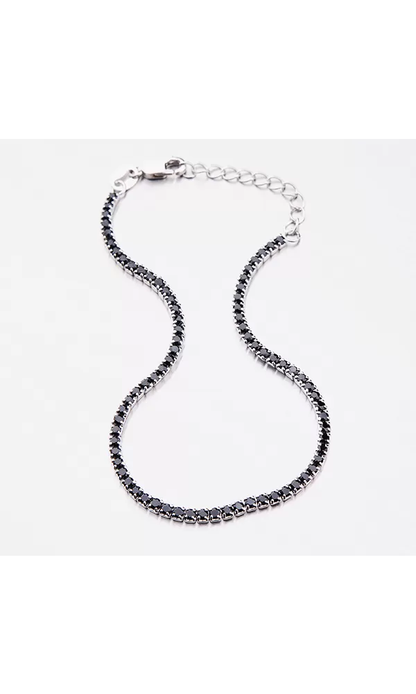 Luxusný náramok oplýva veľkým leskom. Náramok je precízne vysadený čiernymi zirkónmi v briliantovom bruse. Dĺžka náramku je 16 cm, s využitím retiazky 3 cm, je možné náramok zapnúť v dĺžke 16 až 19 cm. Náramok je vyrobený zo striebra s rýdzosťou 925/1000 v lesklej povrchovej úprave a povrch náramku je zušľachtenýrhodiovaním.  Náramok sa zapína na karabínu.