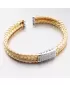 Pevný masívny náramok v originálnom prevedení zdobí obdĺžnik vysadený zirkónmi v briliantovom bruse. Žltú farbu zlata mu dodáva technika zlatenia PVD. Prednosťou zlatenia technológií PVD je vysoká tvrdosť a odolnosť proti oteru! Ide o hrubú vrstvu, ktorá preniká do pôvodného materiálu. Zlatenie technológií PVD sa dá porovnať s približne 12 mikrónmi galvanického zlatenia, čo je vysoká hodnota, ktorá pri bežnom nosení vydrží až 12 rokov.