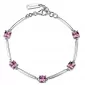 Veľmi slušivý náramok je vyrobený z rhodiovaného striebra rýdzosti 925/1000. Ródium je ušľachtilý drahý kov zo skupiny platinových kovov. Rhodiovaním strieborných šperkov galvanickým nanášaním tohto drahého kovu sa stáva povrch šperku tvrdší, stálejší a odolnejší voči vonkajším vplyvom ako je mechanický oter, poškriabanie, nabiehanie striebra, ľudský pot, kozmetické prípravky a ďalšie. Ródium je antialergické. Náramok je zdobený hranatými kubickými zirkónmi v ružovej farbe. Dĺžka anáramku je 16 cm a zapína sa na spoľahlivú karabínu.