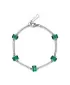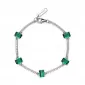 Veľmi slušivý náramok je vyrobený z rhodiovaného striebra rýdzosti 925/1000. Ródium je ušľachtilý drahý kov zo skupiny platinových kovov. Rhodiovaním strieborných šperkov galvanickým nanášaním tohto drahého kovu sa stáva povrch šperku tvrdší, stálejší a odolnejší voči vonkajším vplyvom ako je mechanický oter, poškriabanie, nabiehanie striebra, ľudský pot, kozmetické prípravky a ďalšie. Ródium je antialergické. Náramok je zdobený menšími kubickými zirkónmi a hranatými kubickými zirkónmi v zelenej farbe. Dĺžka náramku je 16 cm a zapína sa na spoľahlivú karabínu.