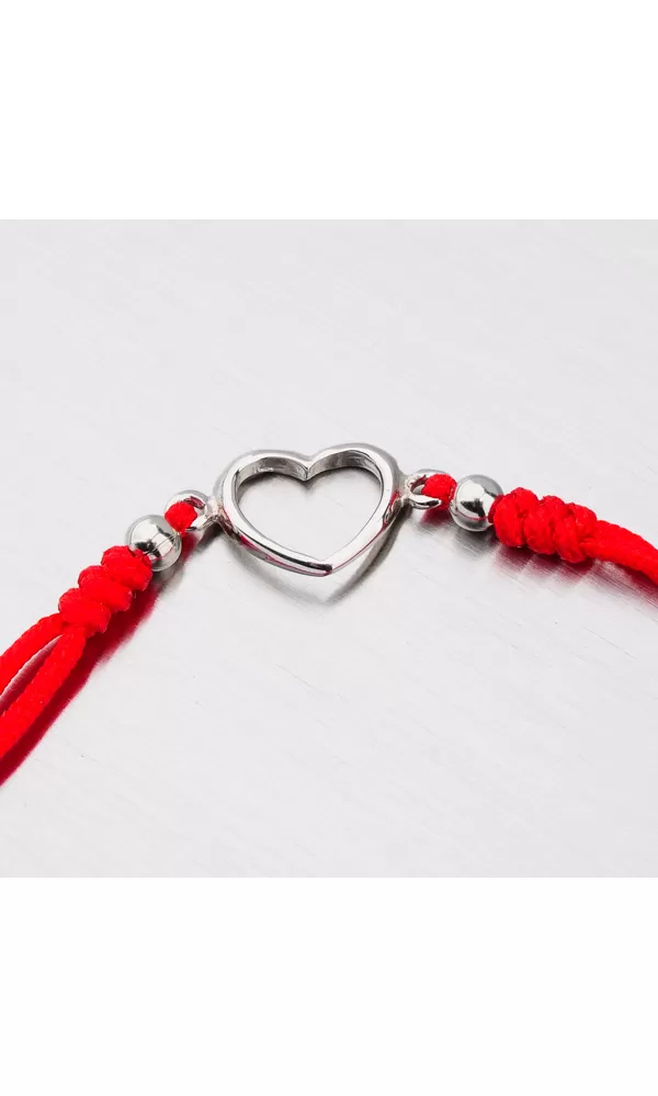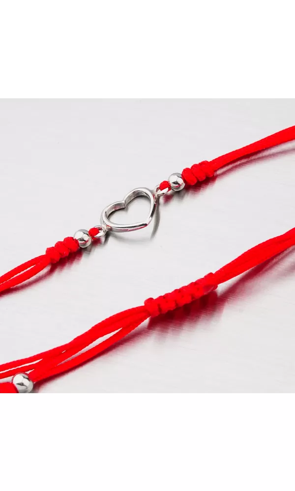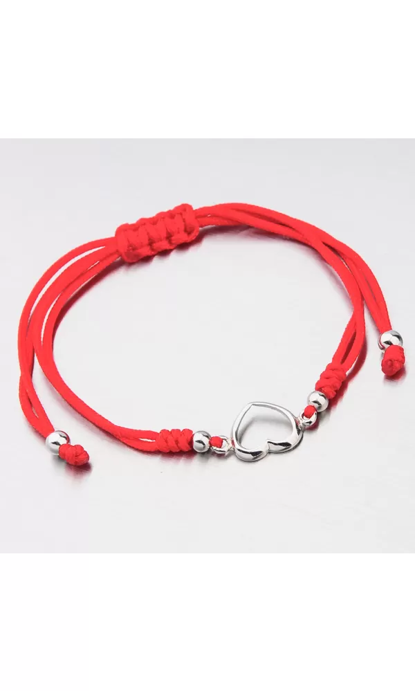 Módny dámsky náramok je tvorený z textilnej šnúrky v červenej farbe, ktorá je zdobená príveskom v tvare srdca a doplnkami v striebre. Posuvná dĺžka náramku umožní pohodlné nosenie bez pretáčania. Minimálna dĺžka náramku je 16 cm, maximálna náramku 24 cm