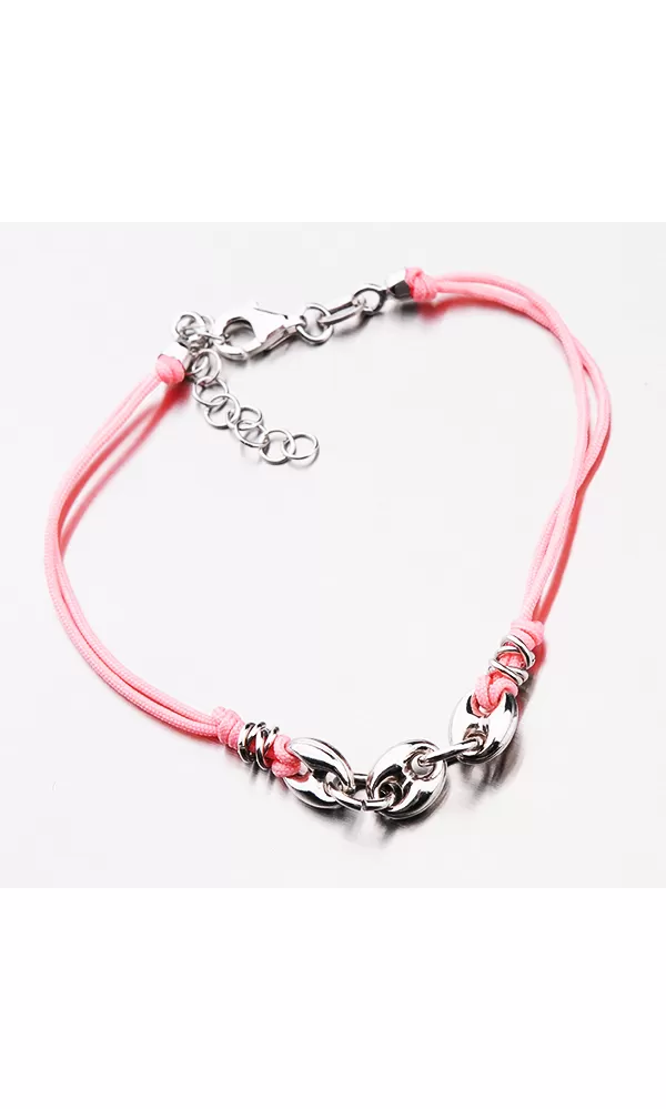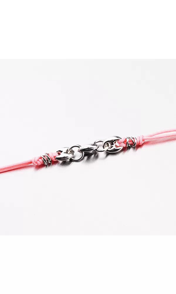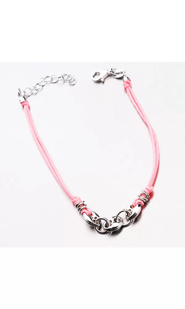 Náramok je tvorený z textilného povrázku, ktorý je doplnený strieborné doplnky. Náramok sa zapína na karabínu. Dĺžka náramku je 16 cm s použitím… Celý popis