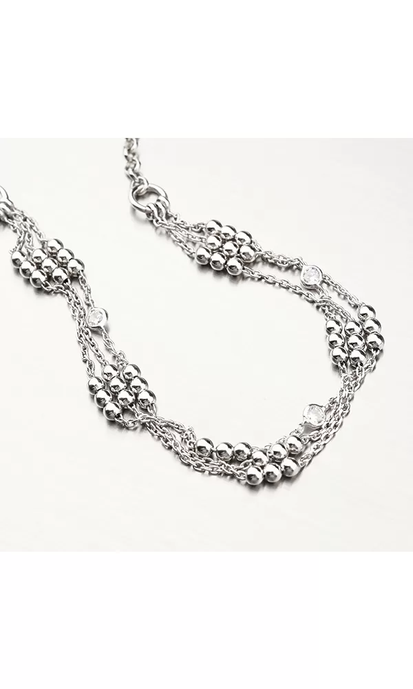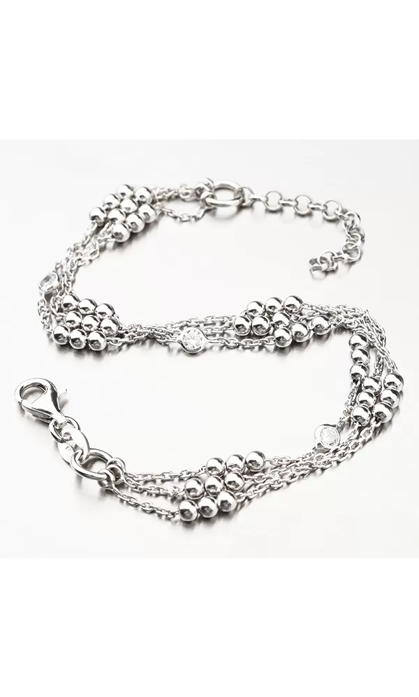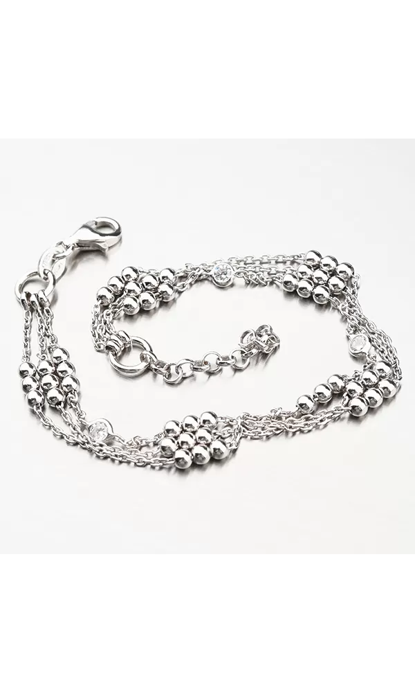 Dámsky náramok vyrobený zo striebra rýdzosti 925/1000. Pre vysokú odolnosť náramku je jeho povrch rhodiovaný. Ródium je ušľachtilý drahý kov zo skupiny platinových kovov. Rhodiovaním strieborných šperkov galvanickým nanášaním tohto drahého kovu sa povrch šperku stáva tvrdším, trvácnejším a odolnejším voči vonkajším vplyvom ako sú mechanické otery, poškriabanie, zatekanie striebra, ľudský pot, kozmetické prípravky a iné. Rhodium je antialergické.