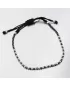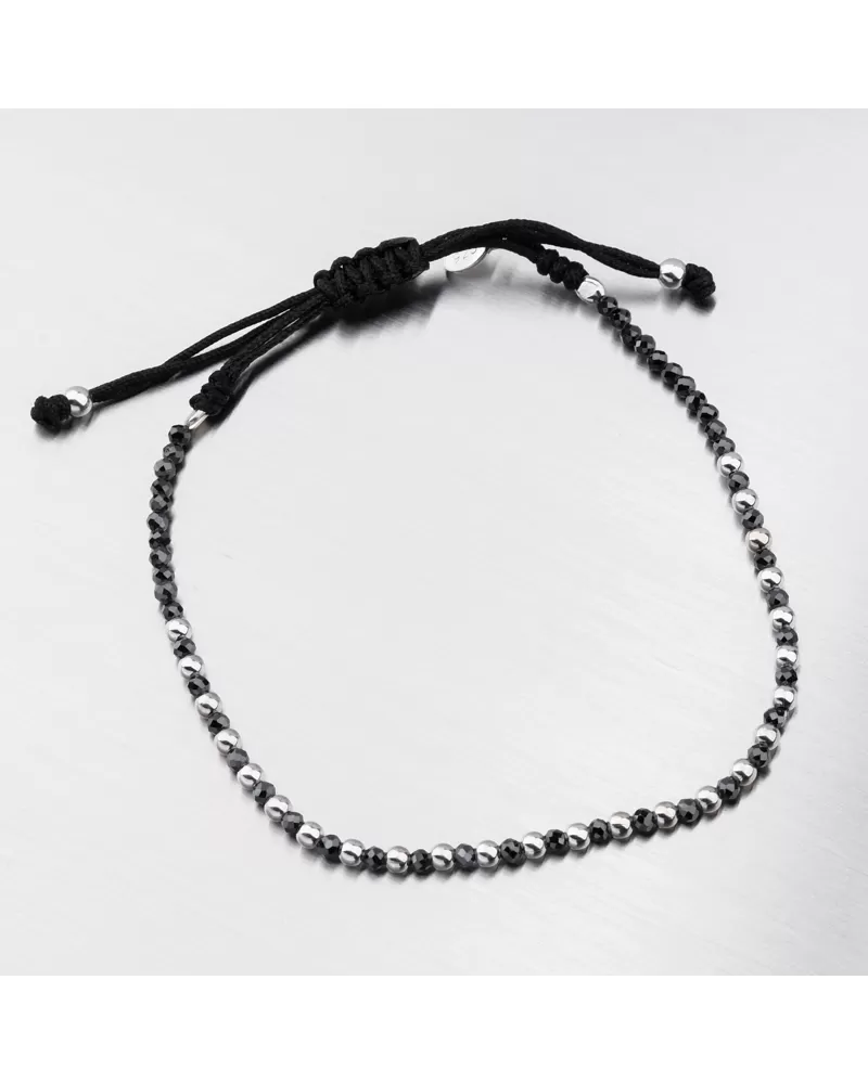 Veľmi populárny typ náramku struny, ktorý má výhodu vo svojej univerzálnej veľkosti a tiež vhodnosť pre obe pohlavia. Náramok pozostáva z čiernej dvojitého šnúr, ktorý je zdobený čiernymi zirkónmi, ktoré sa striedajú so striebornými guľami. Gule sú tiež na koncoch šnúrky.