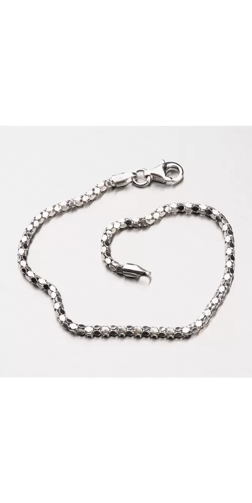 Nádherný náramok vyrobený zo striebra o rýdzosti 925/1000 zaujme svojím tvarom, vďaka ktorému sa náramok leskne zo všetkých uhlov pohľadu. Pre vysokú odolnosť náramku je jeho povrch zušľachtený rhodiovaním. Ródium je ušľachtilý drahý kov zo skupiny platinových kovov. Rhodiovaním strieborných šperkov galvanickým nanášaním tohto drahého kovu sa stáva povrch šperku tvrdší, stálejší a odolnejší voči vonkajším vplyvom ako je mechanický oter, poškriabanie, nabiehanie striebra, ľudský pot, kozmetické prípravky a ďalšie. Ródium je antialergické.
