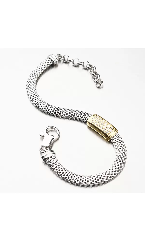 Príjemný náramok je vyrobený zo striebra o rýdzosti 925/1000 v lesklej povrchovej úprave. Náramok je zdobený technikou PVD vo farbe žltého zlata. Prednosťou zlatenia technológií PVD je vysoká tvrdosť a odolnosť proti oteru! Ide o hrubú vrstvu, ktorá preniká do pôvodného materiálu. Zlatenie technológií PVD sa dá porovnať s približne 12 mikrónmi galvanického zlatenia, čo je vysoká hodnota, ktorá pri bežnom nosení vydrží až 12 rokov.