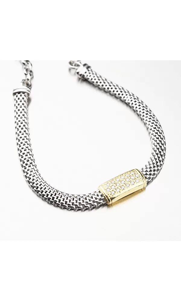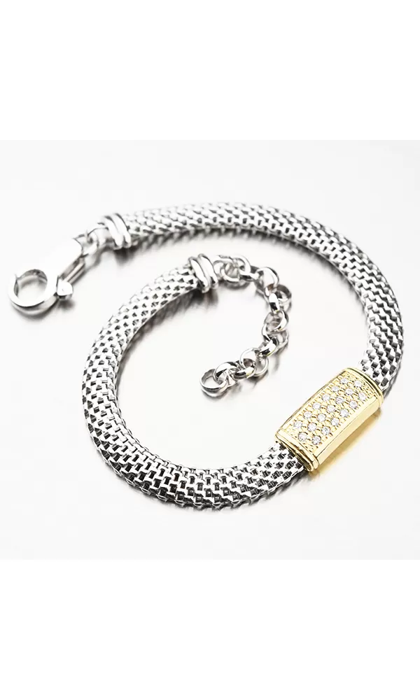 Príjemný náramok je vyrobený zo striebra o rýdzosti 925/1000 v lesklej povrchovej úprave. Náramok je zdobený technikou PVD vo farbe žltého zlata.… Celý popis