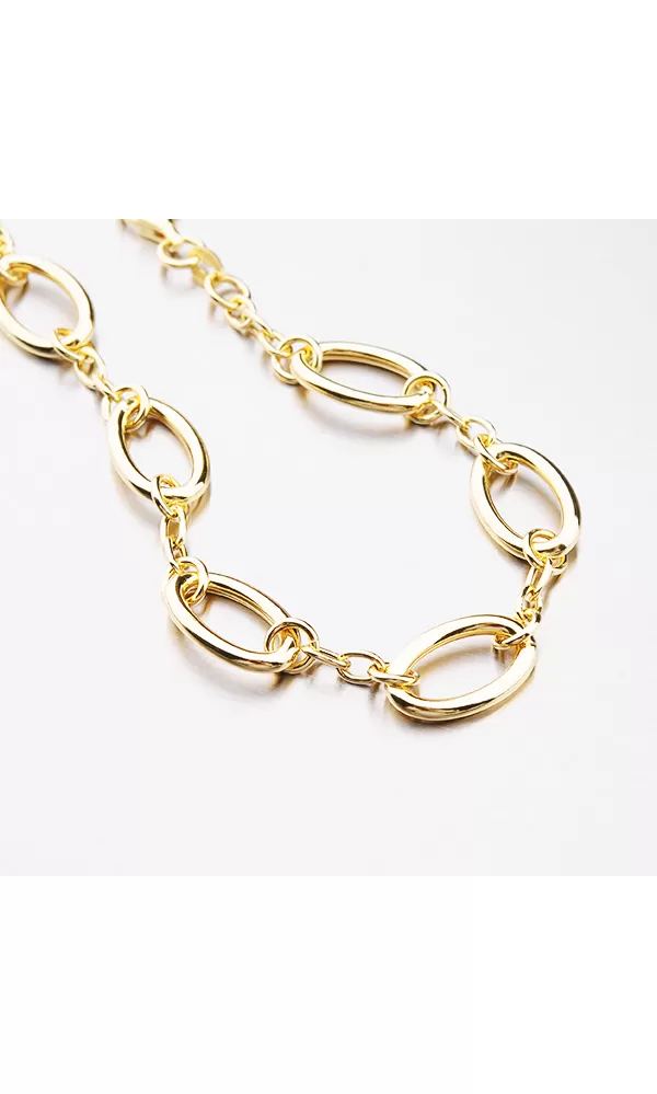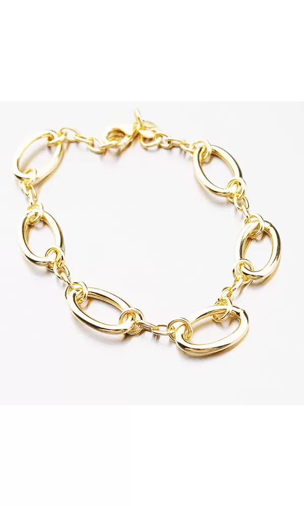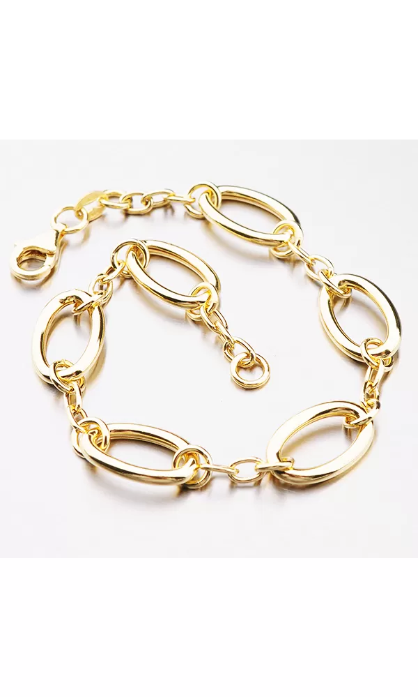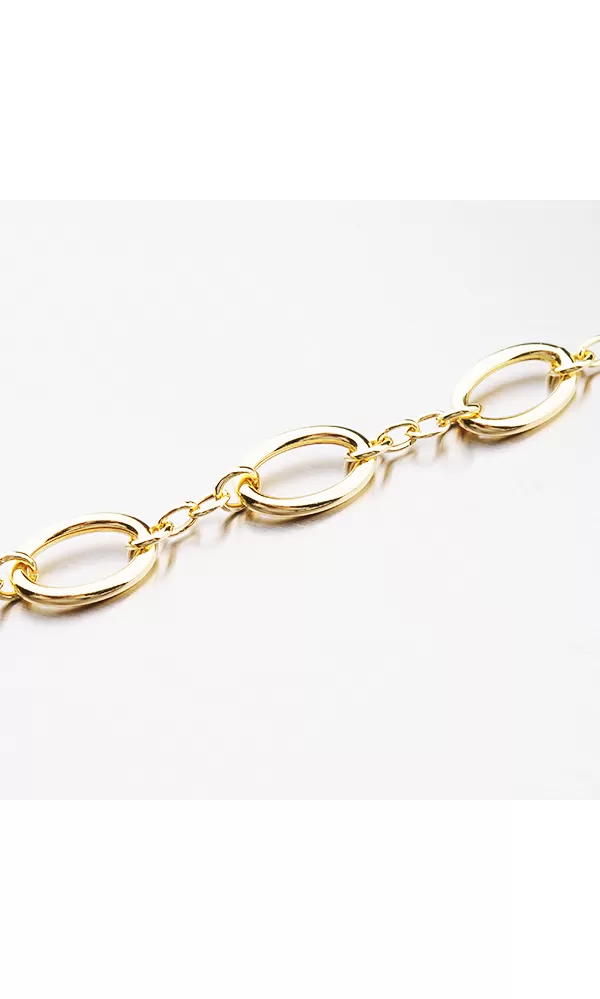Elegantný náramok je vyrobený z prsteňov a oválov. Náramok je pozlátený technikou PVD vo farbe žltého zlata. Výhodou pozlátenia technológiou PVD je vysoká tvrdosť a odolnosť proti oderu! Je to hrubá vrstva, ktorá preniká pôvodným materiálom. PVD pozlátenie možno prirovnať k približne 12 mikrónov galvanického pozlátenia, čo je vysoká hodnota, ktorá pri bežnom opotrebovaní vydrží až niekoľko rokov.