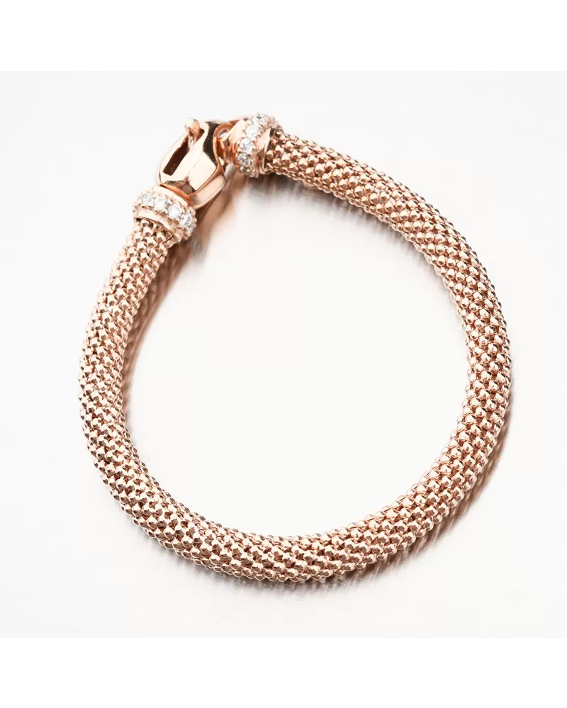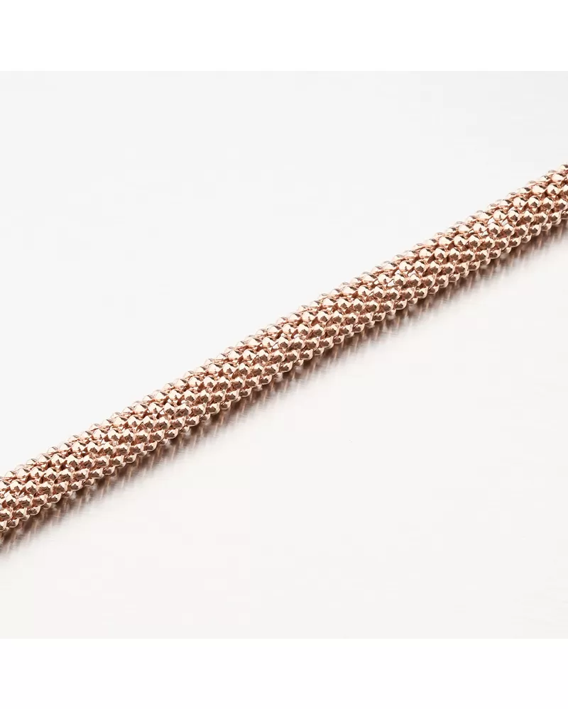 Masívny náramok je vyrobený zo striebra s rýdzosťou 925/1000 v lesklej povrchovej úprave. Náramok je pozlátený technikou PVD vo farbe ružového zlata. Prednosťou zlatenia technológií PVD je vysoká tvrdosť a odolnosť proti oteru! Ide o hrubú vrstvu, ktorá preniká do pôvodného materiálu. Zlatenie technológií PVD sa dá porovnať s približne 12 mikrónmi galvanického zlatenia, čo je vysoká hodnota, ktorá pri bežnom nosení vydrží až 12 rokov.