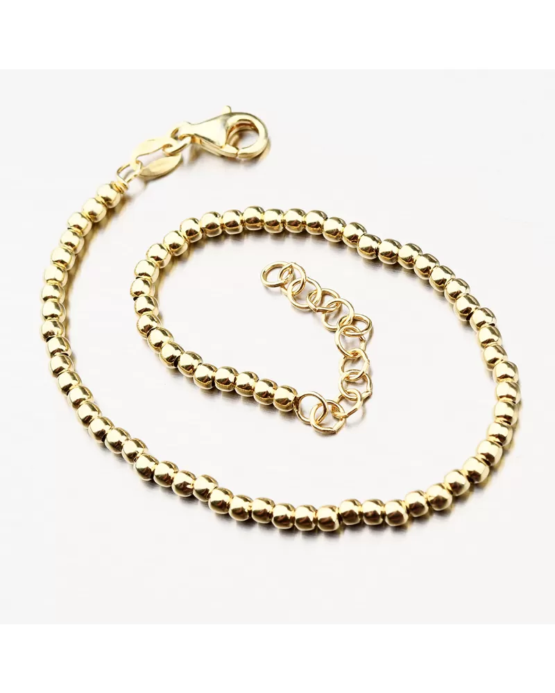 Veľmi pohodlný dámsky náramok je vyrobený zo strieborných guličiek, ktoré sú vyleštené do vysokého lesku. Náramok je pozlátený technikou PVD vo farbe žltého zlata. Výhodou pozlátenia technológiou PVD je vysoká tvrdosť a odolnosť proti oderu! Ide o hrubú vrstvu, ktorá preniká pôvodným materiálom. PVD zlátenie sa dá prirovnať k približne 12 mikrónov galvanického pozlátenia, čo je vysoká hodnota, ktorá pri bežnom opotrebovaní vydrží až niekoľko rokov.
