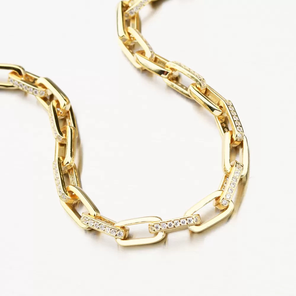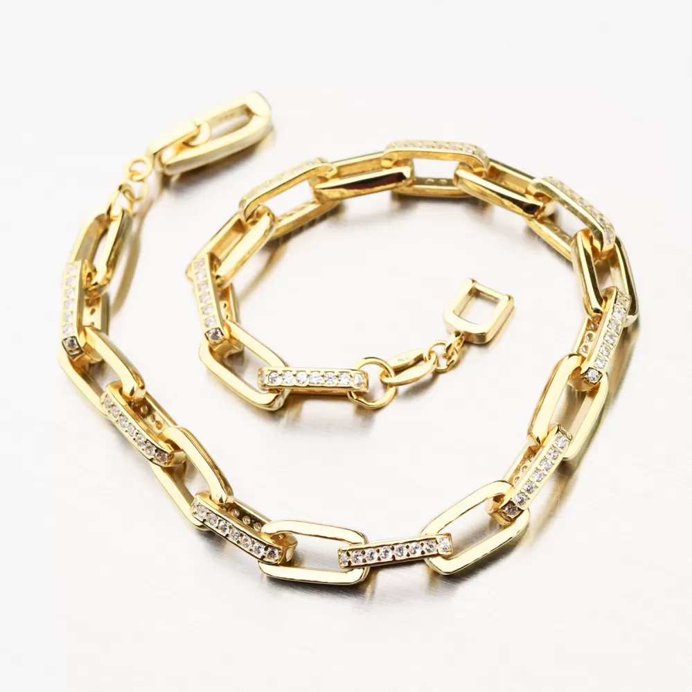 Zlacený náramek je zdoben zirkony v briliantovém brusu, které jsou precizně vsazeny do stříbra. Ozdobte své zápěstí tímto luxusním kouskem a nikdo Vás nepřehlédne.