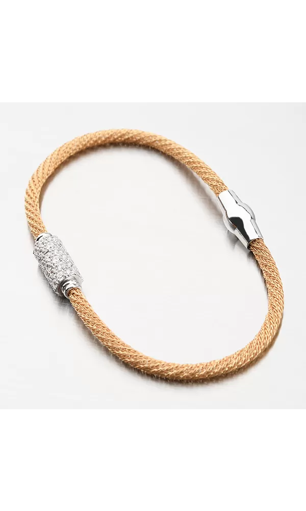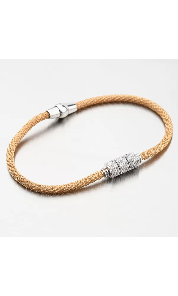Žiarivý dámsky náramok, ktorý je zdobený uprostred dookola osadenými zirkónmi brúsenými do briliantovom bruse. Žltú farbu zlata náramku dodáva technika zlatenia PVD. Prednosťou zlatenia technológií PVD je vysoká tvrdosť a odolnosť proti oteru! Ide o hrubú vrstvu, ktorá preniká do pôvodného materiálu. Zlatenie technológií PVD sa dá porovnať s približne 12 mikrónmi galvanického zlatenia, čo je vysoká hodnota, ktorá pri bežnom nosení vydrží až 12 rokov.