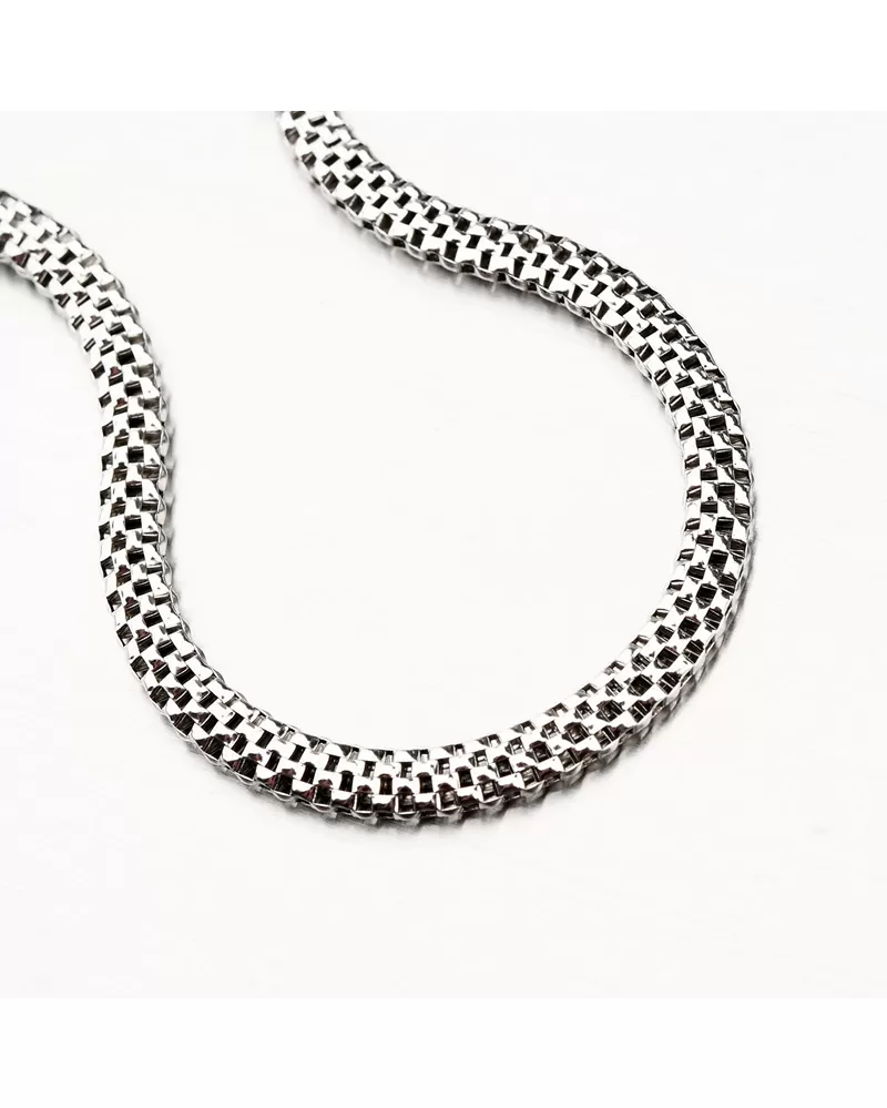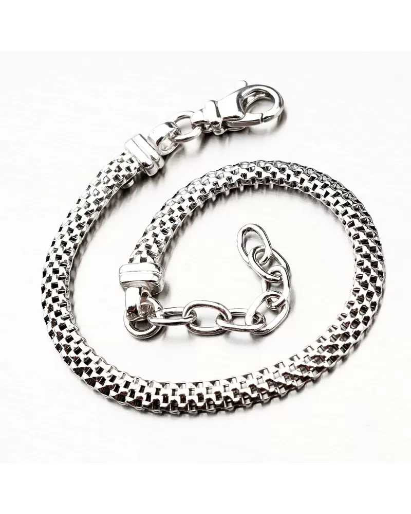 Elegantný náramok je vyrobený zo striebra založeného na Rhodium s čistotou 925/1000 v lesklom povrchu. Rhodium je ušľachtilý drahý kov zo skupiny Platinum Metal Group. Rhodia strieborných šperkov galvanickou aplikáciou tohto drahého kovu sa stávajú tvrdšie, prísnejšie a odolné voči vonkajším vplyvom, ako je mechanické oderie, škrabance, striebro, ľudský pot, kozmetické výrobky a ďalšie. Rhodium je antialergické.