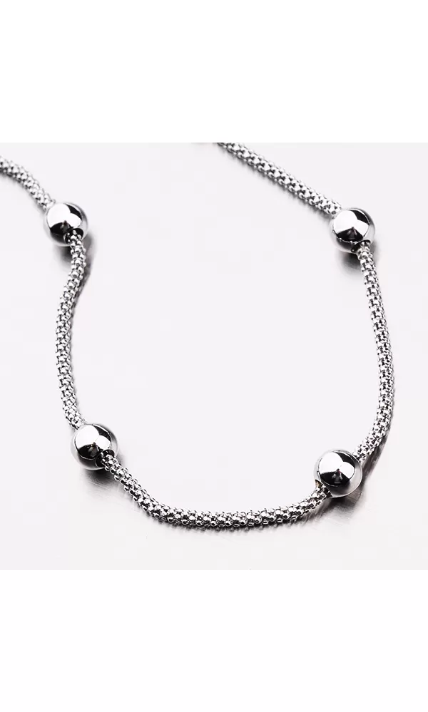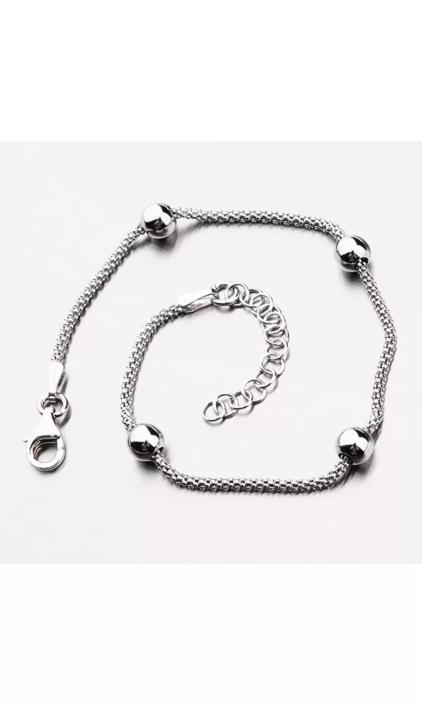 Krásny dámsky náramok je zdobený leštenými loptičkami. Náramok je pripevnený k karabíne. Dĺžka náramku je 17 cm pomocou dodatočného reťazca s dĺžkou 3 cm. Náramok môžete otočiť na 20 cm.