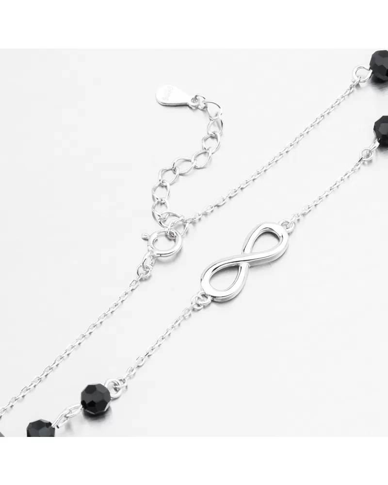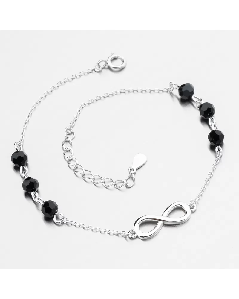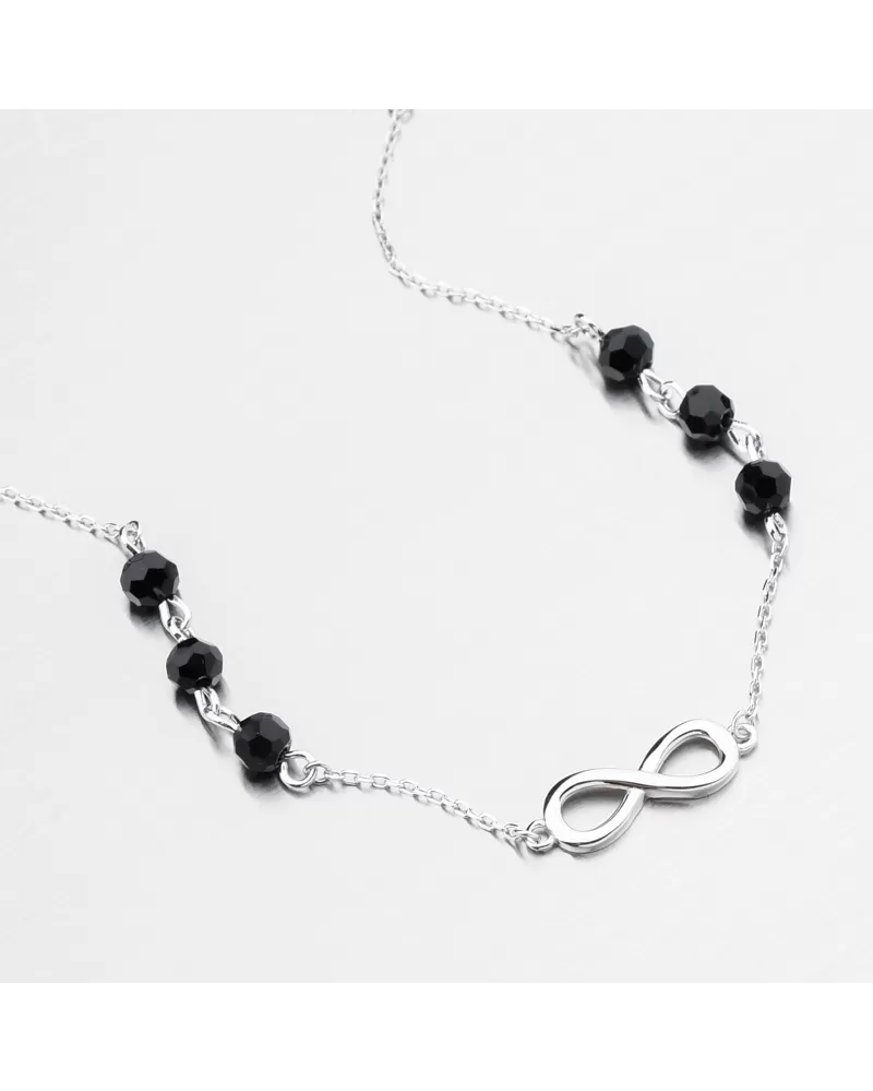 Moderný náramok s populárnymi čiernymi guľami, ktoré sú rezané a trblietajúce sa vo všetkých smeroch. Uprostred náramku je symbol nekonečna. Tento strieborný náramok je v poriadku a bude po všetkom, po tom všetkom oblečení, bude pohodlný.