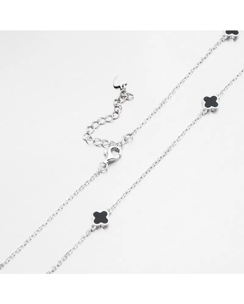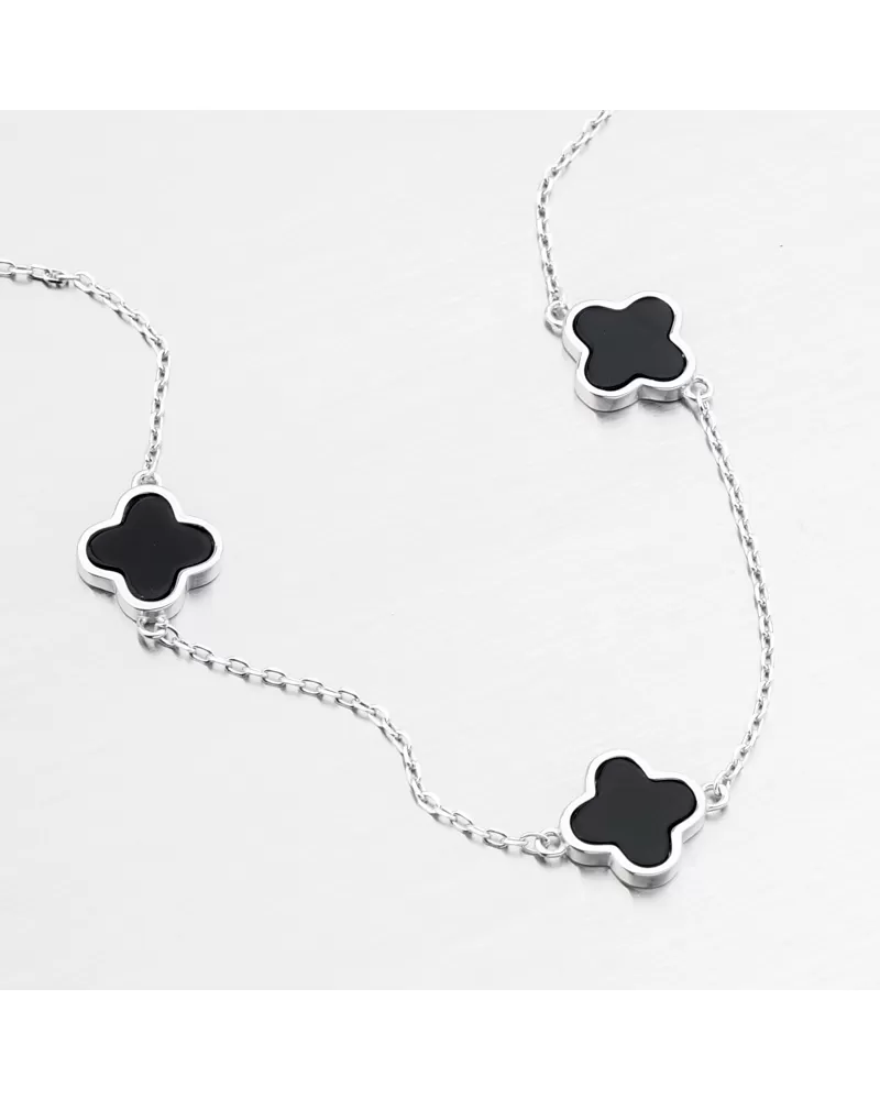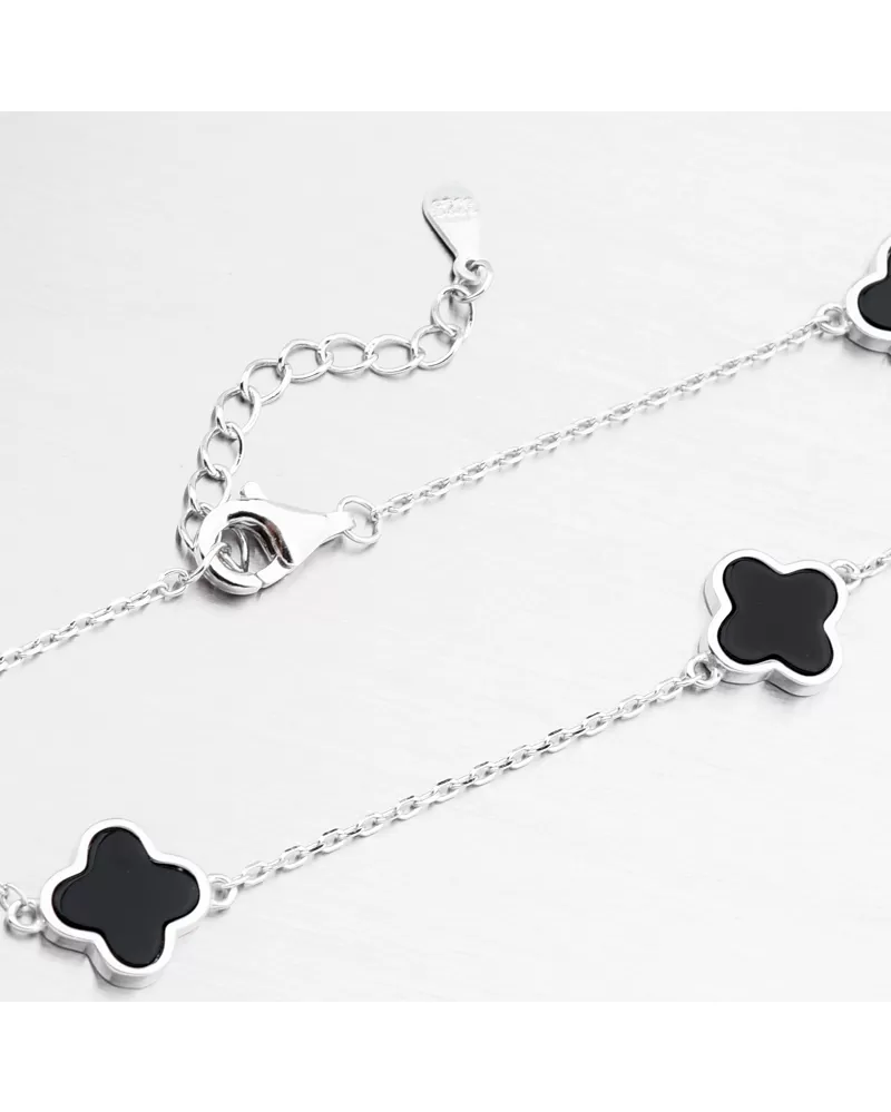 náramok, ktorý bude očariť na prvý pohľad. Náramky štvorčlenných ďatelín sú populárnym symbolom šťastia, nádeje a pozitívnej energie. Náramok má reťaz typu súhlasu a zdobený dekoráciami v tvare štvorspelného ďateliny v čiernej farbe.