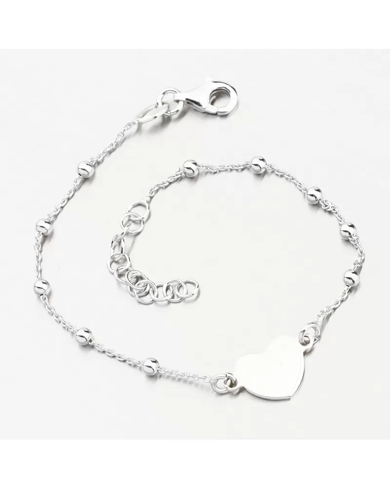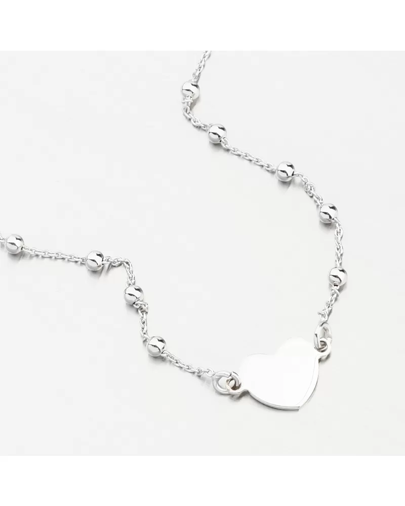 Vyzdobte si zápästie moderným náramkom, ktorý je vyrobený z reťazca s guľami. Náramok je leštený vo vysokom lesku a je zdobený príveskom na tvare srdca. Na prednej alebo zadnej časti prívesku je možné nechať dátum, obetavosť alebo iný text, ktorý si vyberiete.
