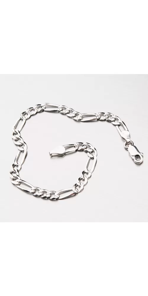 Náramok typu Figaro 3+1 je vyrobený zo striebra o rýdzosti 925/1000 a je povrchovo zdobený bočnými gravírovanými facetami, ktoré sú robené diamantovým nástrojom a dodávajú šperku vysoký lesk zo všetkých uhlov. Pre vysokú odolnosť náramku je jeho povrch zušľachtený rhodiovaním. Ródium je ušľachtilý drahý kov zo skupiny platinových kovov. Rhodiovaním strieborných šperkov galvanickým nanášaním tohto drahého kovu sa stáva povrch šperku tvrdší, stálejší a odolnejší voči vonkajším vplyvom ako je mechanický oter, poškriabanie, nabiehanie striebra, ľudský pot, kozmetické prípravky a ďalšie. Ródium je antialergické.