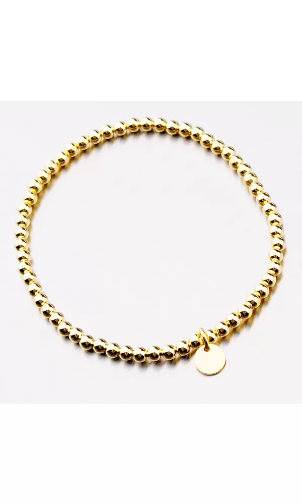 Náramok je tvorený striebornými leštenými guličkami, ktoré sú navlečené na pružnom vlasci. Náramok zdobí prívesok vo v okrúhlom tvare a pozlátenie PVD povrchovou úpravou. Prednosťou zlatenia technológií PVD je vysoká tvrdosť a odolnosť proti oteru! Ide o hrubú vrstvu, ktorá preniká do pôvodného materiálu. Zlatenie technológií PVD sa dá porovnať s približne 12 mikrónmi galvanického zlatenia, čo je vysoká hodnota, ktorá pri bežnom nosení vydrží až 12 rokov.