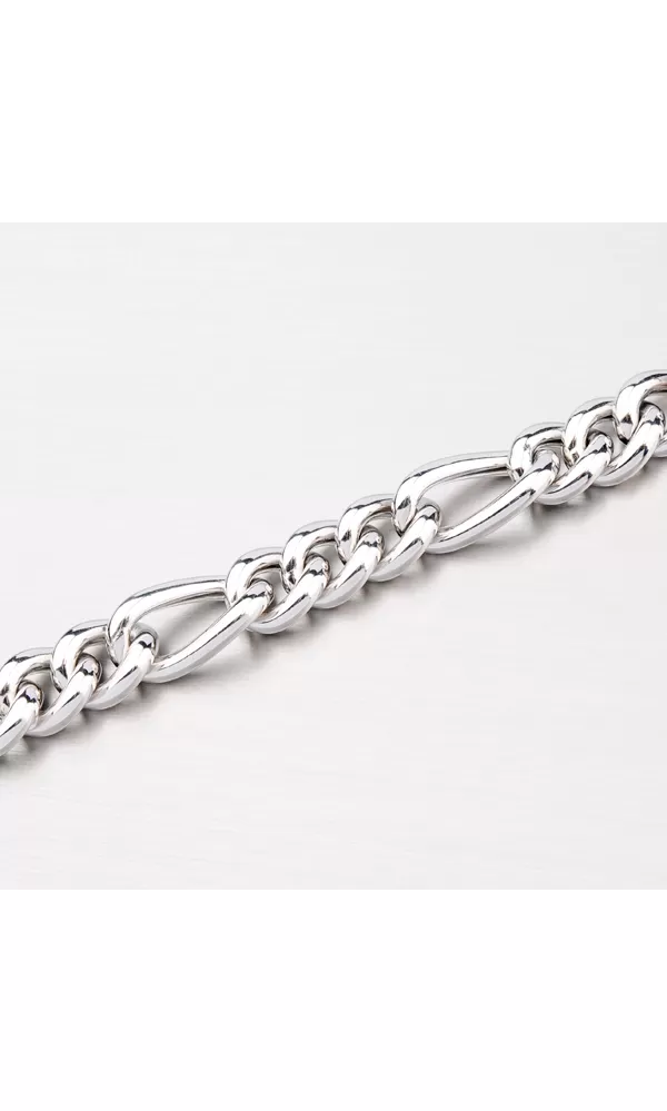 Tento náramok je vyrobený zo striebra o rýdzosti 925/1000 s lesklou povrchovou úpravou. Náramok je typu Figaro 3+1 a vďaka dutým očkam vás nebude náramok ťažiť na zápästie. Povrch náramku je zušľachtený rhodiovaním. Ródium je ušľachtilý drahý kov zo skupiny platinových kovov. Rhodiovaním strieborných šperkov galvanickým nanášaním tohto drahého platinového kovu sa stáva povrch šperku tvrdší, stálejší a odolnejší voči vonkajším vplyvom ako je mechanický oter, poškriabanie, nabiehanie striebra, ľudský pot, kozmetické prípravky a ďalšie. Ródium je antialergické.