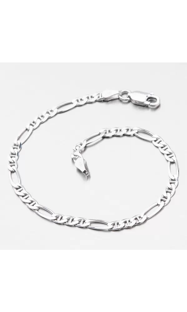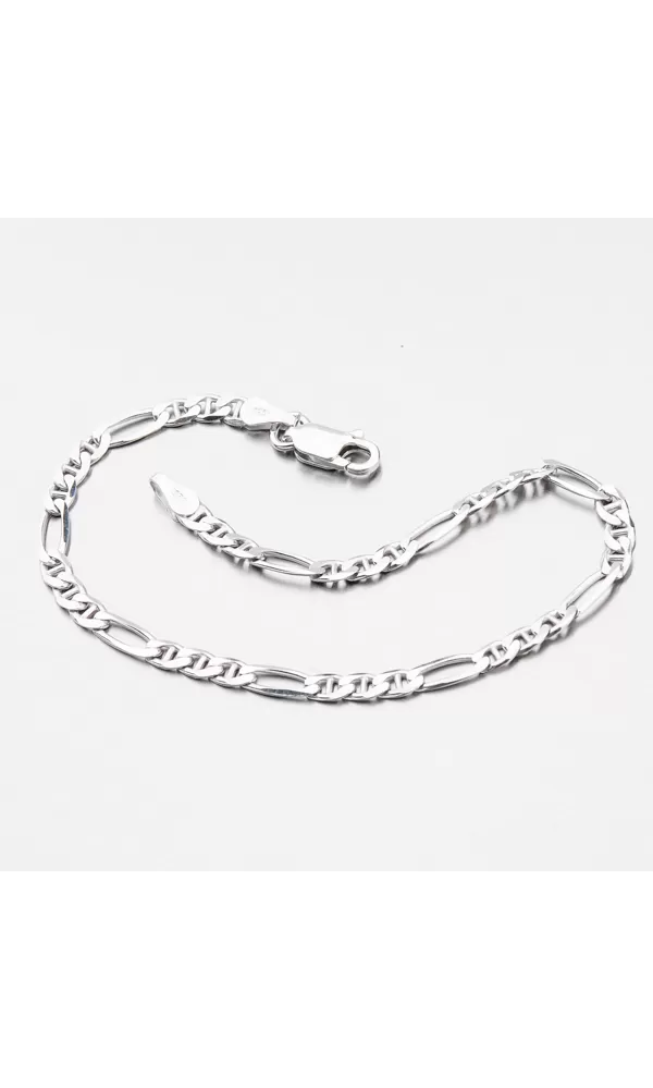 Krásny náramok typu Figaro 3+1 navyše s priečkami v malých očkách je vyrobený zo striebra rýdzosti 925/1000 v lesklej povrchovej úprave so zapínaním na karabínu a je upravený rhodiovaním. Náramok zdobia lesklé facety. Facety sú gravírované diamantovým hrotom, ktorý dodáva šperku maximálny lesk, vďaka ktorému dokonale odráža svetlo a majú krásnu brilanciu zo všetkých uhlov pohľadu!.
