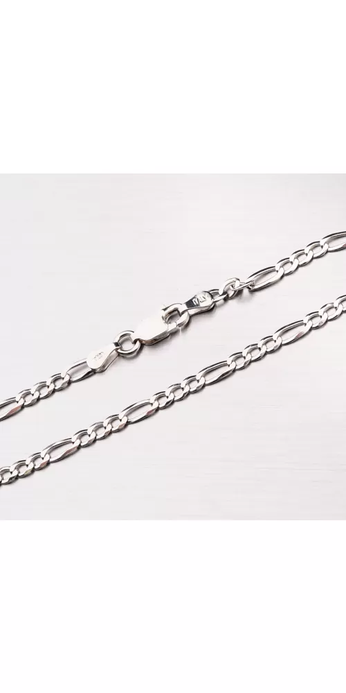 Krásny náramok typu Figaro 3+1 je vyrobený zo strieborna rýdzosti 925/1000 v lesklej povrchovej úprave so zapínaním na karabínu a je upravený rhodiovaním.Náramok zdobí lesklé facety. Facety sú gravírované diamantovým hrotom, ktorý dodáva šperku maximálny lesk.
