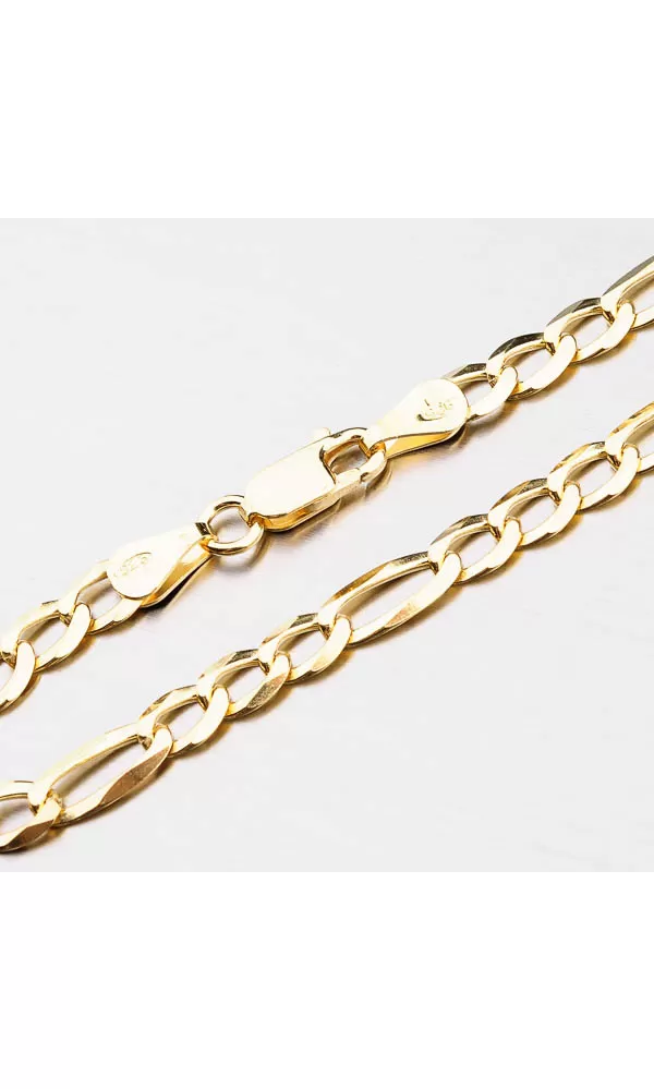 Pánsky strieborný pozlátený náramok Figaro patrí medzi obľúbené šperky. Je totiž nielen krásny a štýlový ale aj praktický. Náramok je hladký a krásne priľne na vašom zápästí takže nebudete zadrhávať. Pre mužov dokonalý šperk, ktorý je efektný a pohodlný. Tento náramok je zaujímavý žltou farbou zlata, ktorú mu dodáva technika zlatenia PVD. Prednosťou zlatenia technológií PVD je vysoká tvrdosť a odolnosť proti oteru! Ide o hrubú vrstvu, ktorá preniká do pôvodného materiálu. Zlatenie technológií PVD sa dá porovnať s približne 6 mikrónmi galvanického zlatenia, čo je vysoká hodnota, ktorá pri bežnom nosení vydrží až niekoľko rokov. Náramok je vyrobený zo striebra o rýdzosti 925/1000 v lesklej povrchovej úprave. Strieborný náramok zapnete masívnou karabínou.