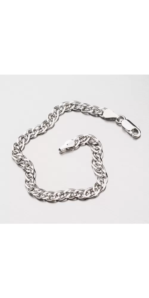 Tento náramok Grand je vyrobený zo strieborna rýdzosti 925/1000 v lesklej povrchovej úprave so zapínaním na karabínu a je upravený rhodiovaním. Ródium je ušľachtilý drahý kov zo skupiny platinových kovov. Rhodiovaním strieborných šperkov galvanickým nanášaním tohto drahého kovu sa stáva povrch šperku tvrdší, stálejší a odolnejší voči vonkajším vplyvom ako je mechanický oter, poškriabanie, nabiehanie striebra, ľudský pot, kozmetické prípravky a ďalšie. Ródium je antialergické.