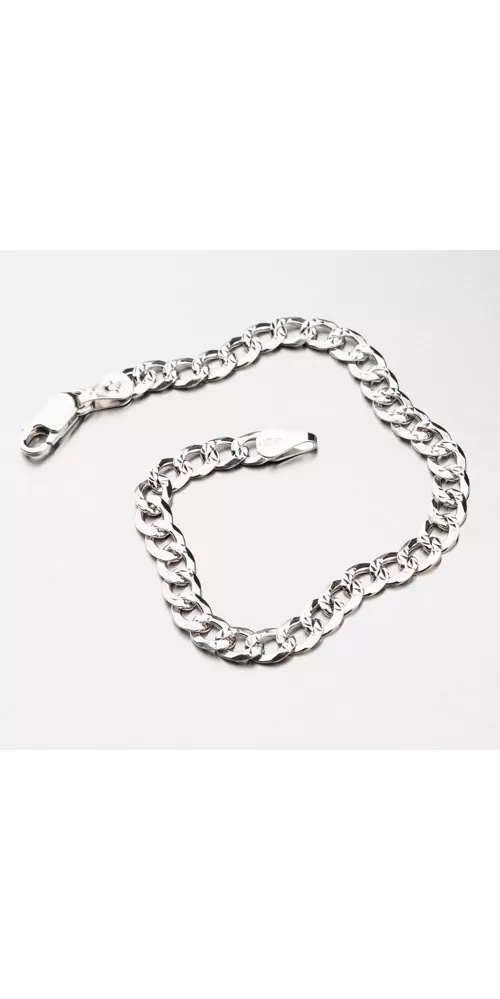 Náramok typu Pancer je vyrobený zo striebra o rýdzosti 925/1000 a je povrchovo zdobený gravírovanými facetami, ktoré sú robené diamantovým nástrojom a dodávajú šperku vysoký lesk zo všetkých uhlov. Z druhej strany je náramok lesklý bez facet a tak ho môžete nosiť podľa nálady. Pre vysokú odolnosť náramku je jeho povrch zušľachtený rhodiovaním. Ródium je ušľachtilý drahý kov zo skupiny platinových kovov. Rhodiovaním strieborných šperkov galvanickým nanášaním tohto drahého kovu sa stáva povrch šperku tvrdší, stálejší a odolnejší voči vonkajším vplyvom ako je mechanický oter, poškriabanie, nabiehanie striebra, ľudský pot, kozmetické prípravky a ďalšie. Ródium je antialergické.