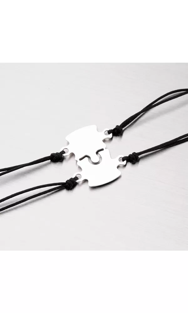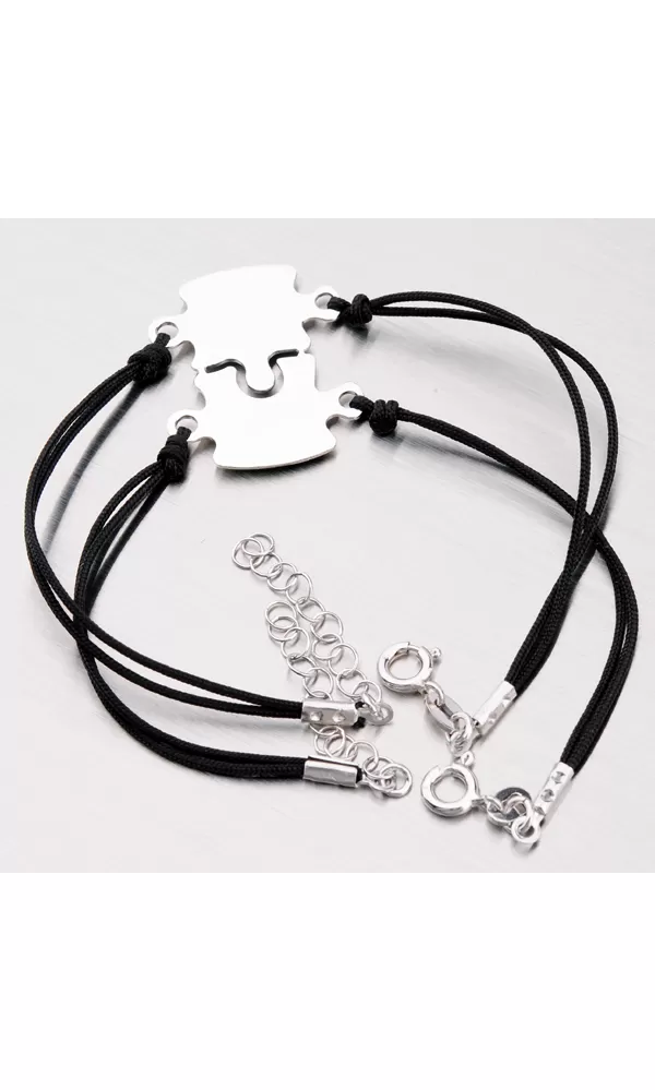 Strieborný rhodiovaný náramok pre zamilovaný pár s príveskom puzzle je vyrobený zo striebra rýdzosti 925/000 v lesklej povrchovej úprave so zapínaním na perový krúžok.